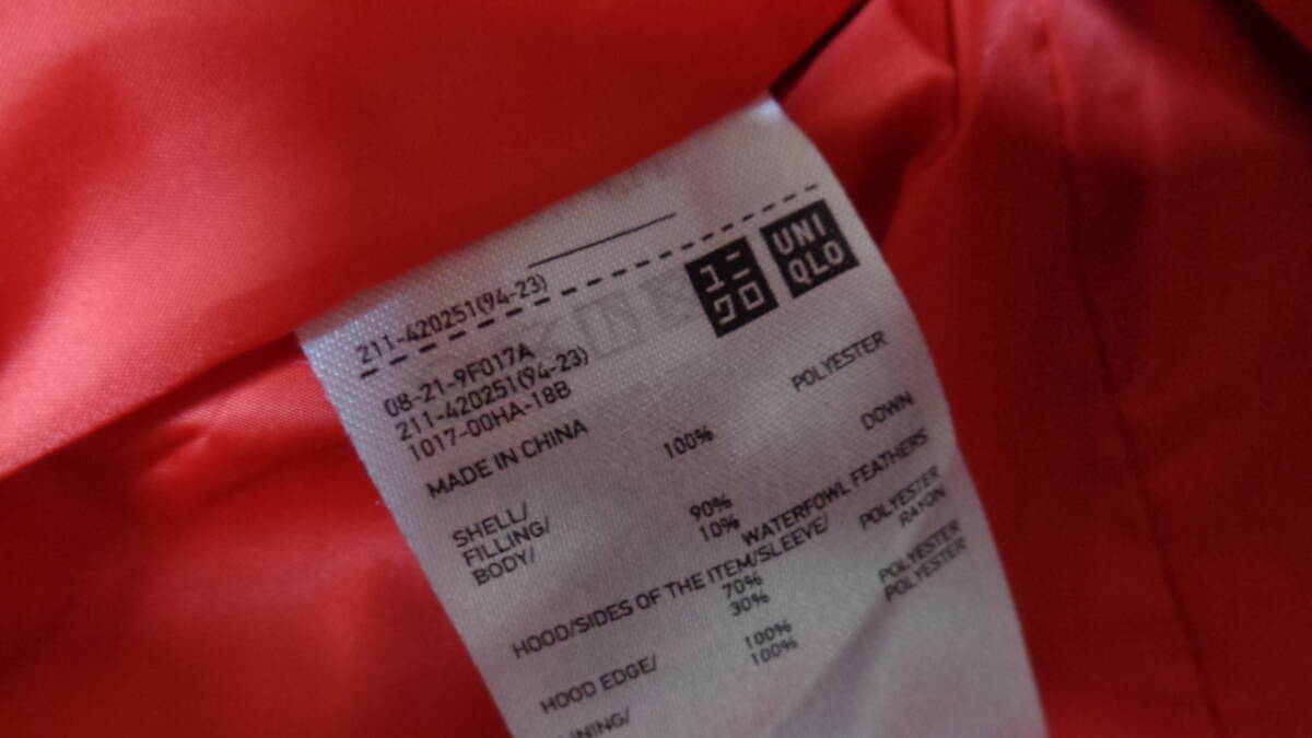 送料込み・クリーニング済み ユニクロ ハイブリッドダウンパーカ カラー: 15 RED XL