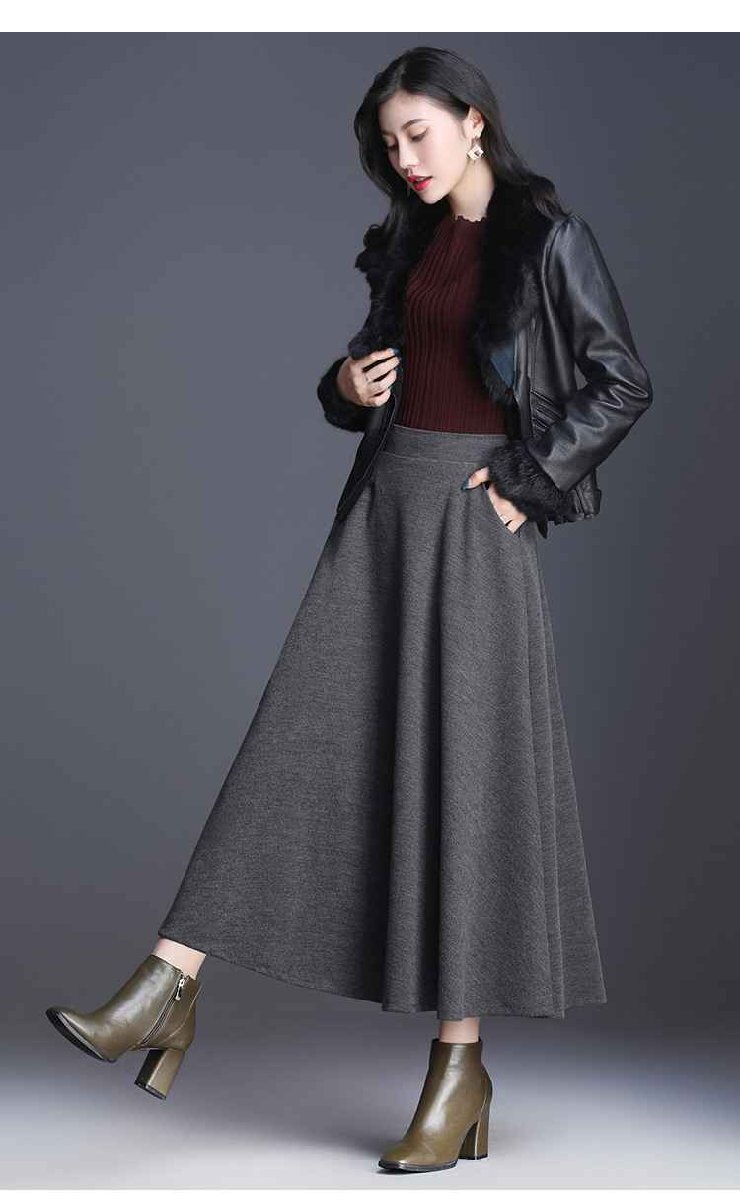秋冬新作 トレンド 無地 フレア スカート Aライン ロング丈 カジュアル 着回し 通勤通学 2XL グレー