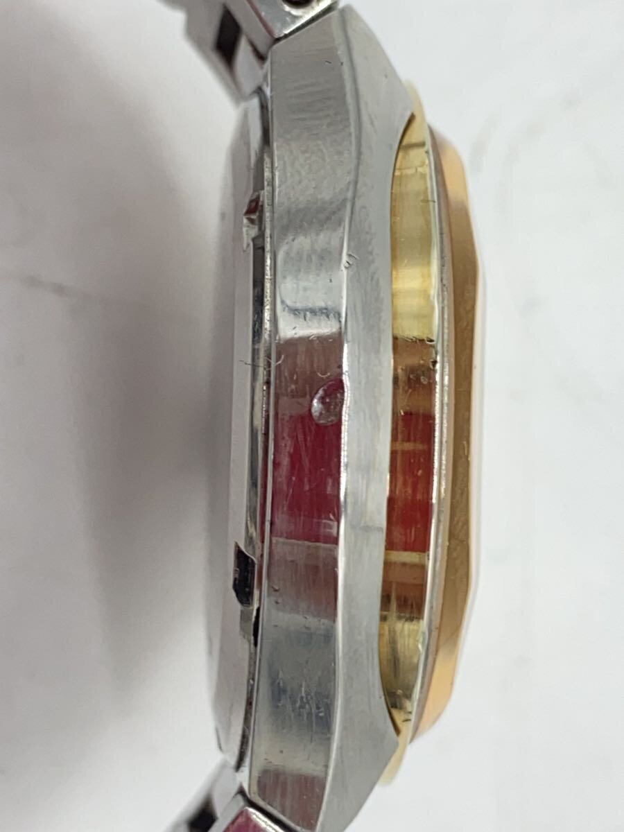 ケースの9時位置に米粒小の打ち痕があります。 カットガラスの傷欠けもなく、上記以外の傷やダメージは比較的少ないお品物です。 OH歴は不明ですが大きな日差もなく正常に動作します。 商品の詳しい状態や、ご不明な点などございましたらお気軽に店頭までお問い合わせ下さいませ。 |