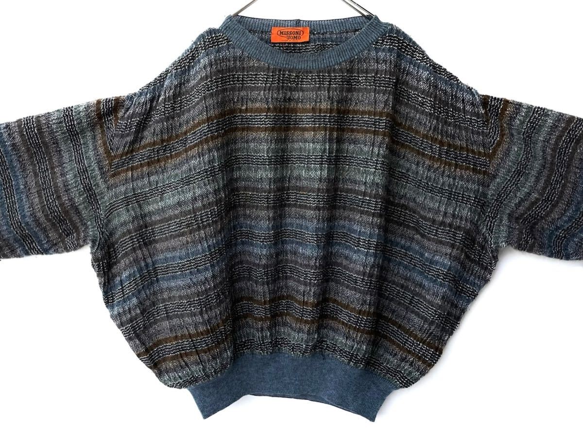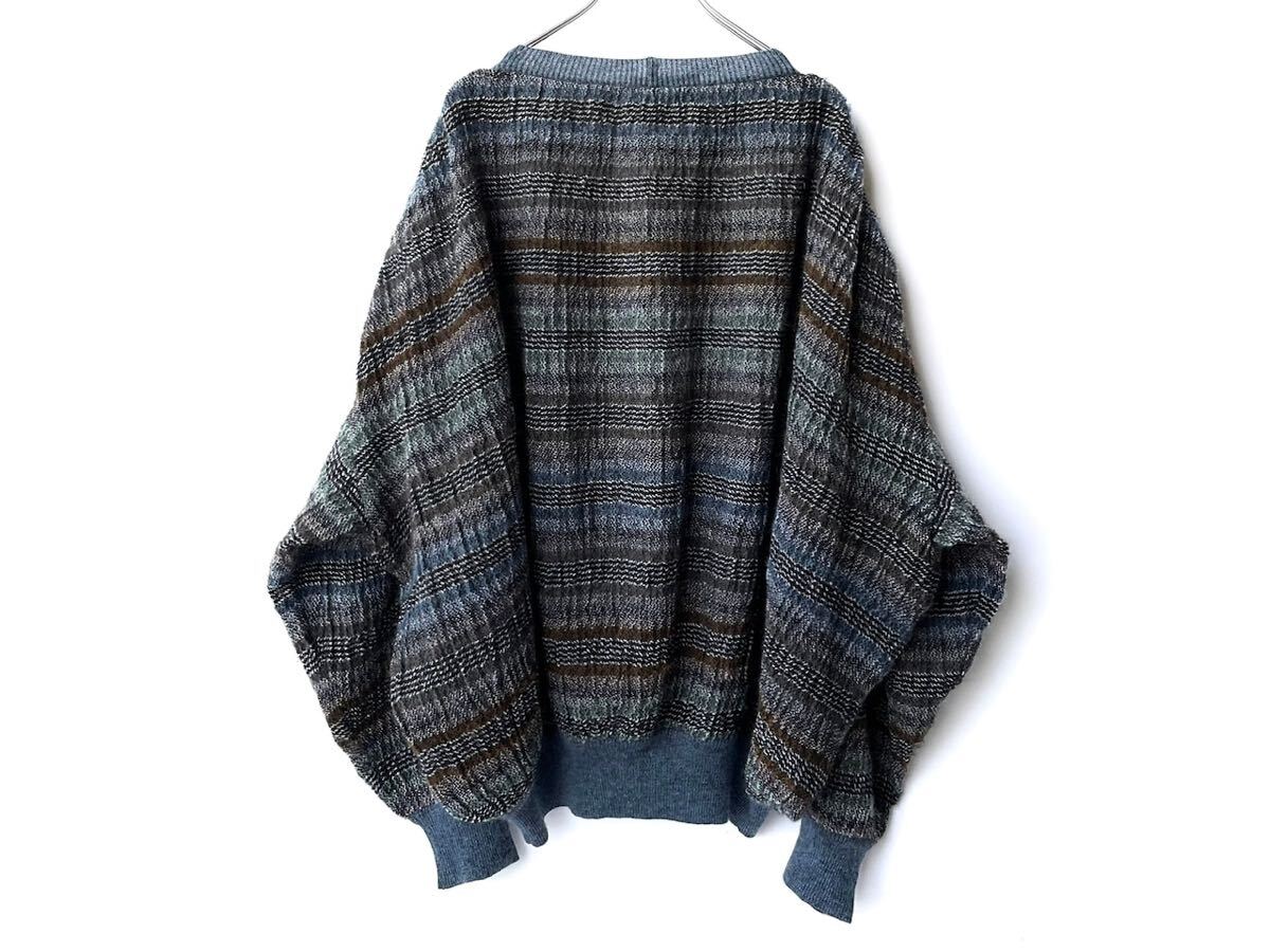 秋冬のメンズニットにおいての、寒色混じりの細かなマルチカラー。