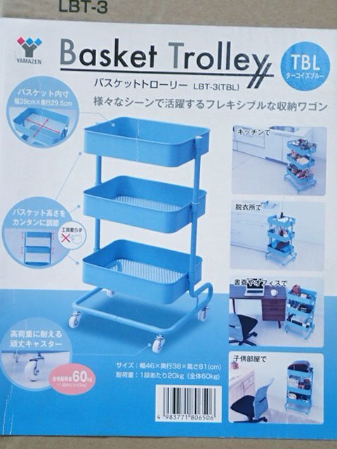●BB● 新品 キャスター付き収納ワゴン L.BT-3(TBL) ターコイズブルー (管理HM8-41) (No-K)
