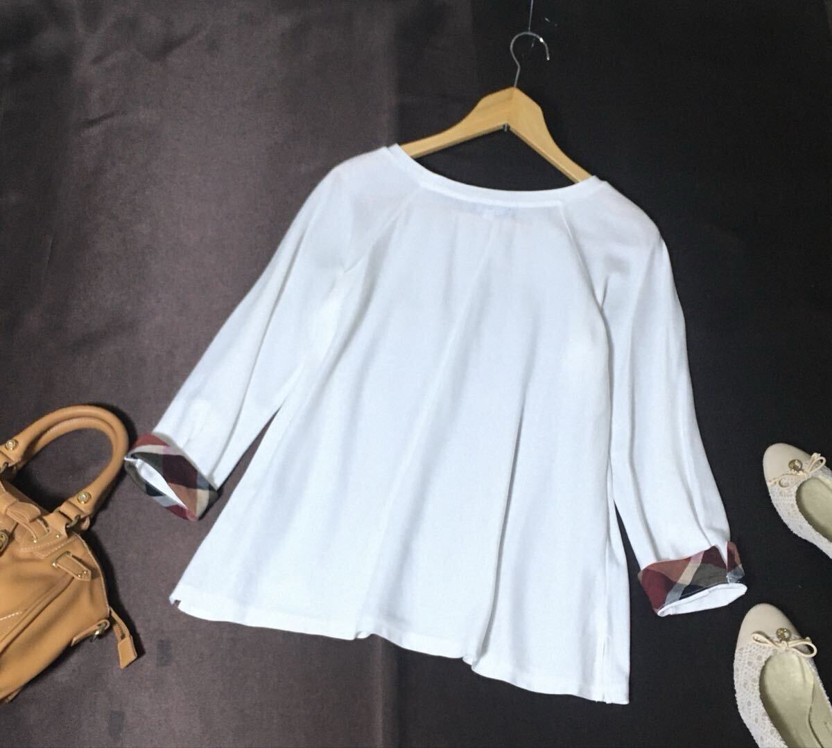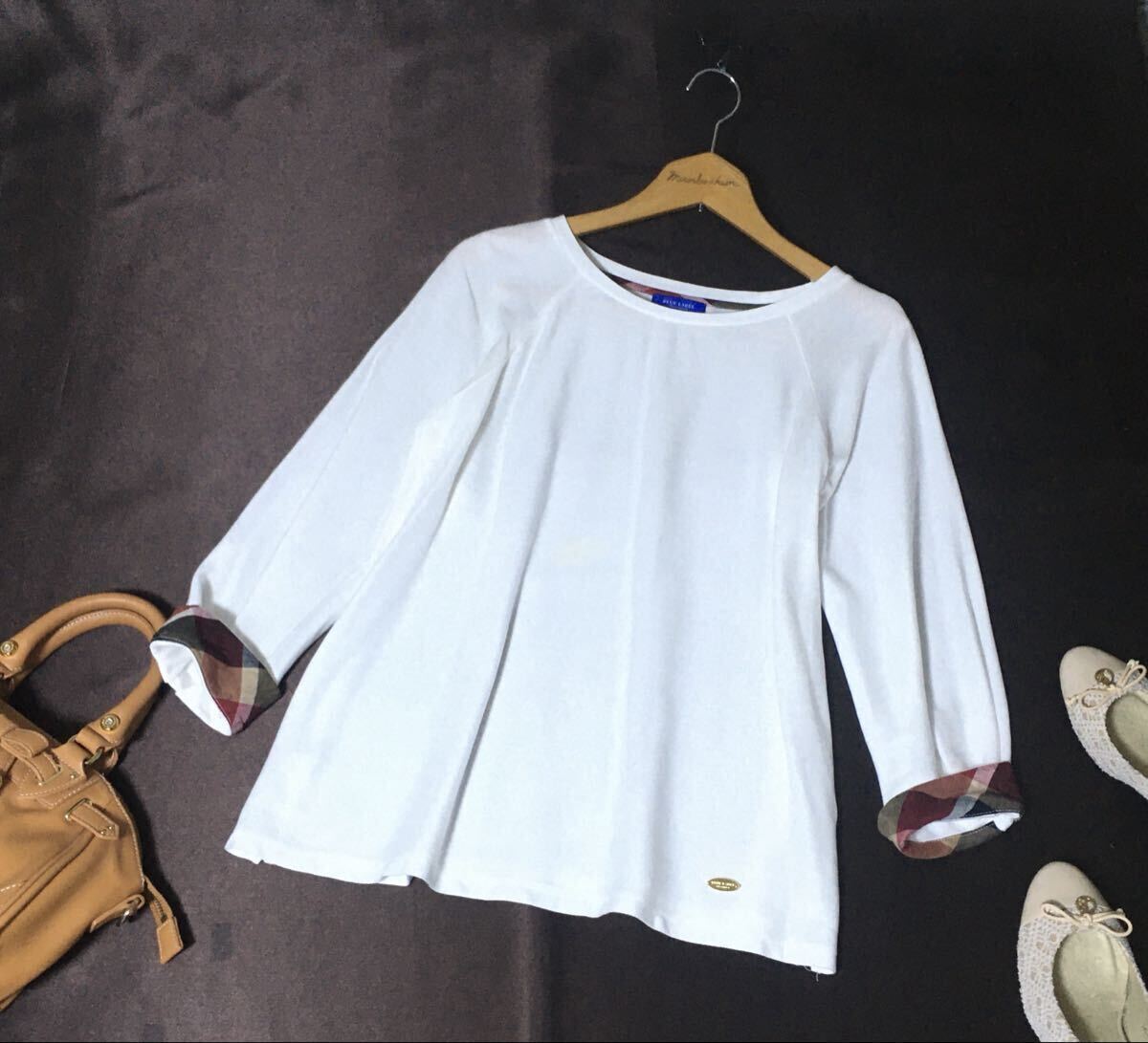 ブルーレーベルクレストブリッジ 折り返しチェックのお袖が可愛いカットソー 38 送料230円♪