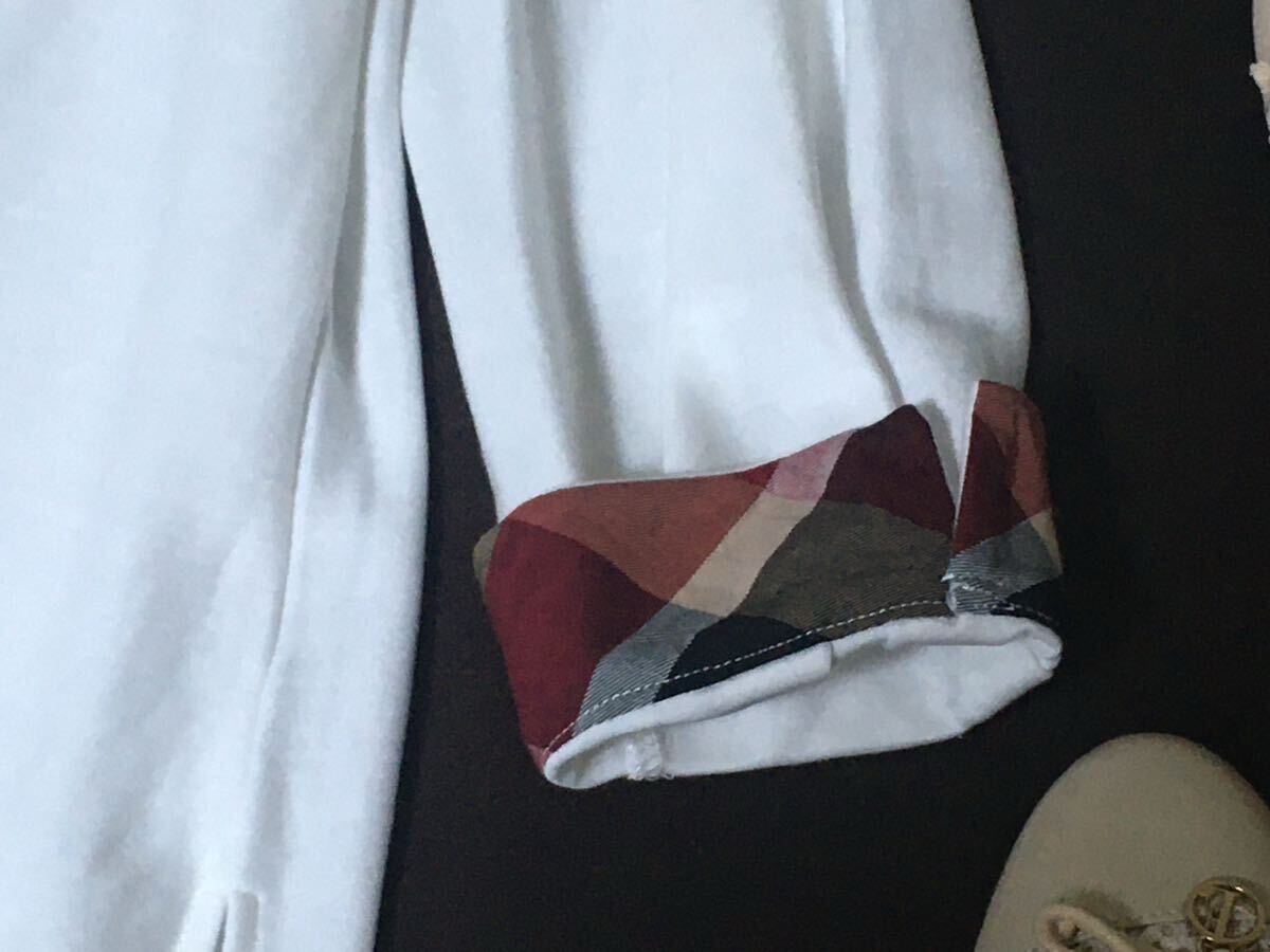 折り返しチェックのお袖がクレストブリッジらしいカットソーです。両サイド小さくスリットが入っています。裾にブランド刻印入りのプレートが付いています。