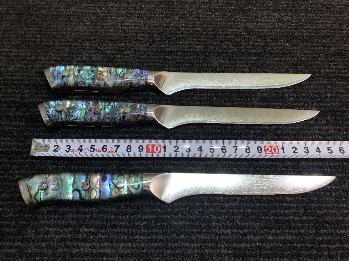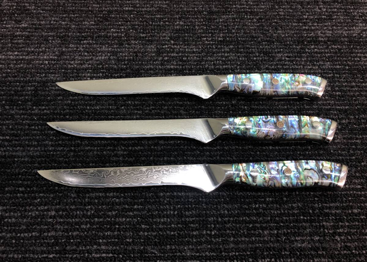 44♪67層ダマスカス VG10 ペティ? ナイフ アワビ殻 3点まとめ 包丁 動作未確認 写真追加有り