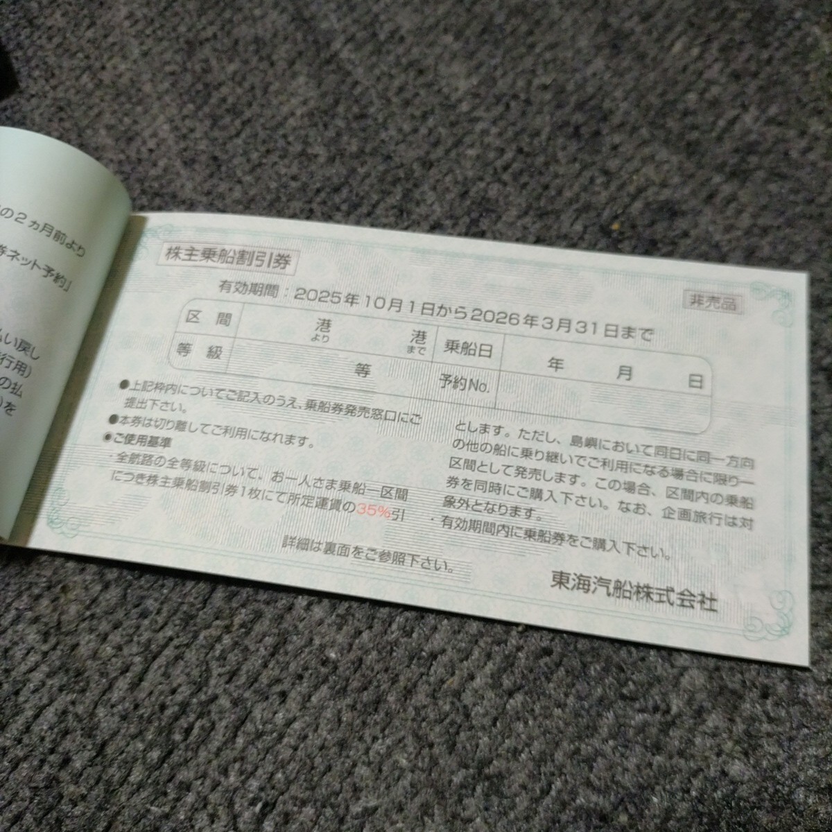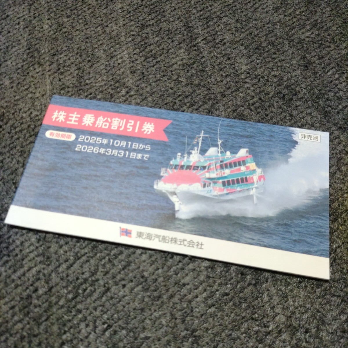 東海汽船の株主乗船割引券1冊となります。 割引内容は東海汽船のホームぺージをご覧下さい。
