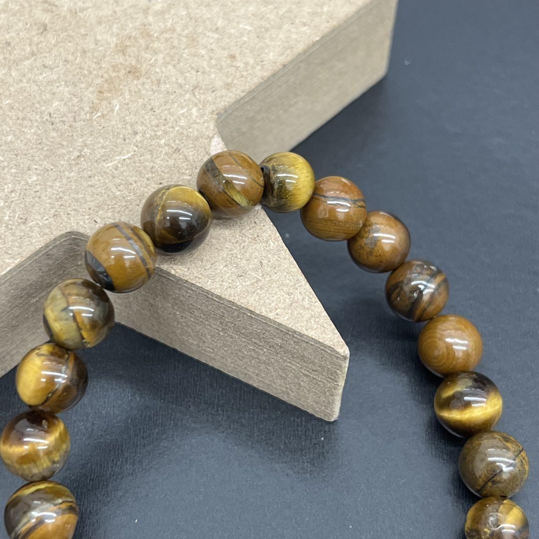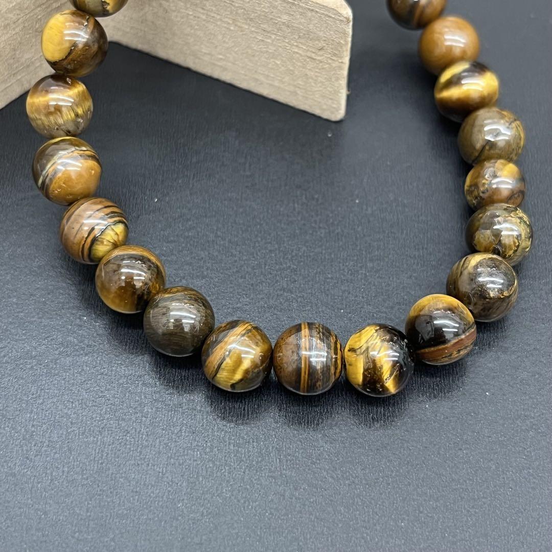 タイガーアイは、その美しい黄金色の縞模様から「虎の目」と呼ばれ、古くから幸運と繁栄をもたらす石として世界各地で愛されてきました。今回ご紹介するのは、8mm珠を使用し、内径約16cmに仕立てた天然石ブレスレットです。一般的な女性や細めの男性にもフィットしやすいサイズで、普段使いはもちろん、お守りとしてもおすすめです。