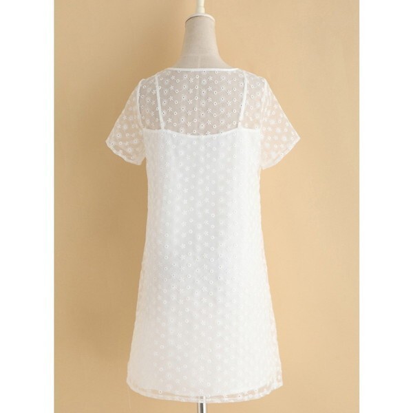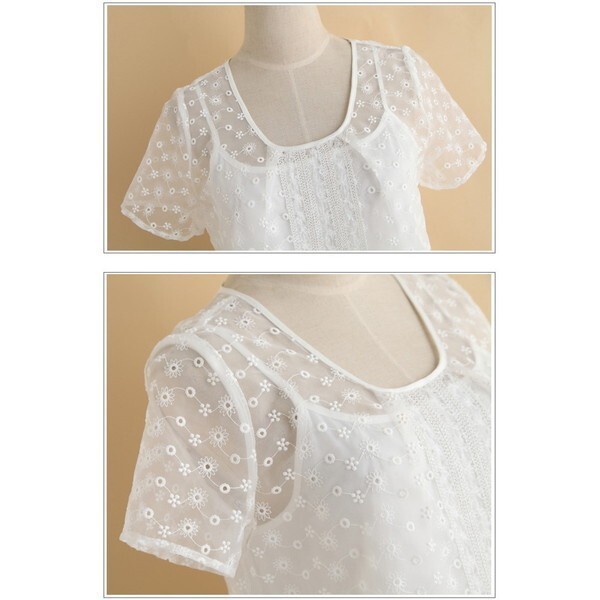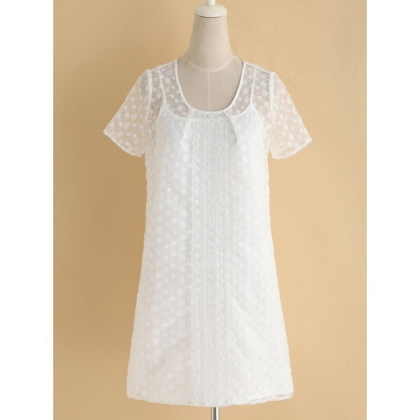 ショート丈ワンピース Aライン 半袖 シフォン ラウンドネック レディース ホワイト S