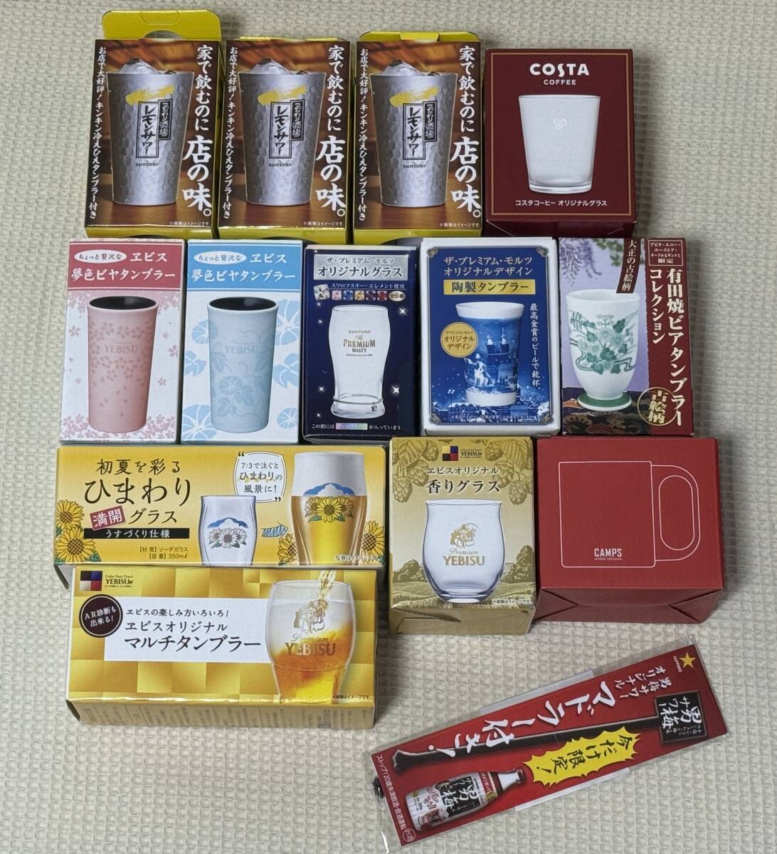 販促非売品「タンブラー」「グラス」/『サッポロ エビス(YEBISU)』『サントリー プレミアムモルツ(MALTS)』等 13個(未使用新品美品)