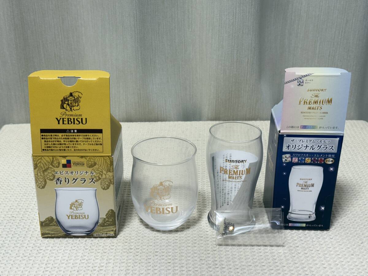 サッポロ エビス(YEBISU)サントリー プレミアムモルツ(PREMIUM MALTS)等の販促用に付属してきた非売品のタンブラーやグラス等になります。