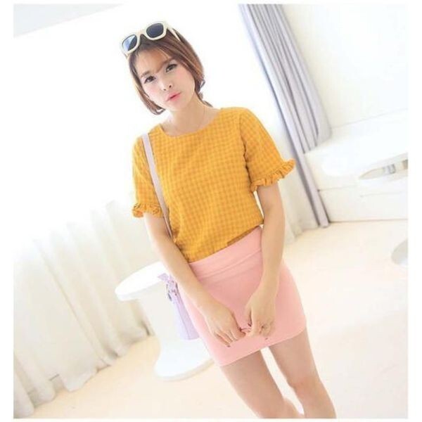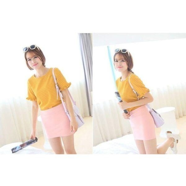 ペンシルスカート ミニ ストレッチ生地 無地 膝上 レディース ハイウェスト スリム フリーサイズ ライトピンク
