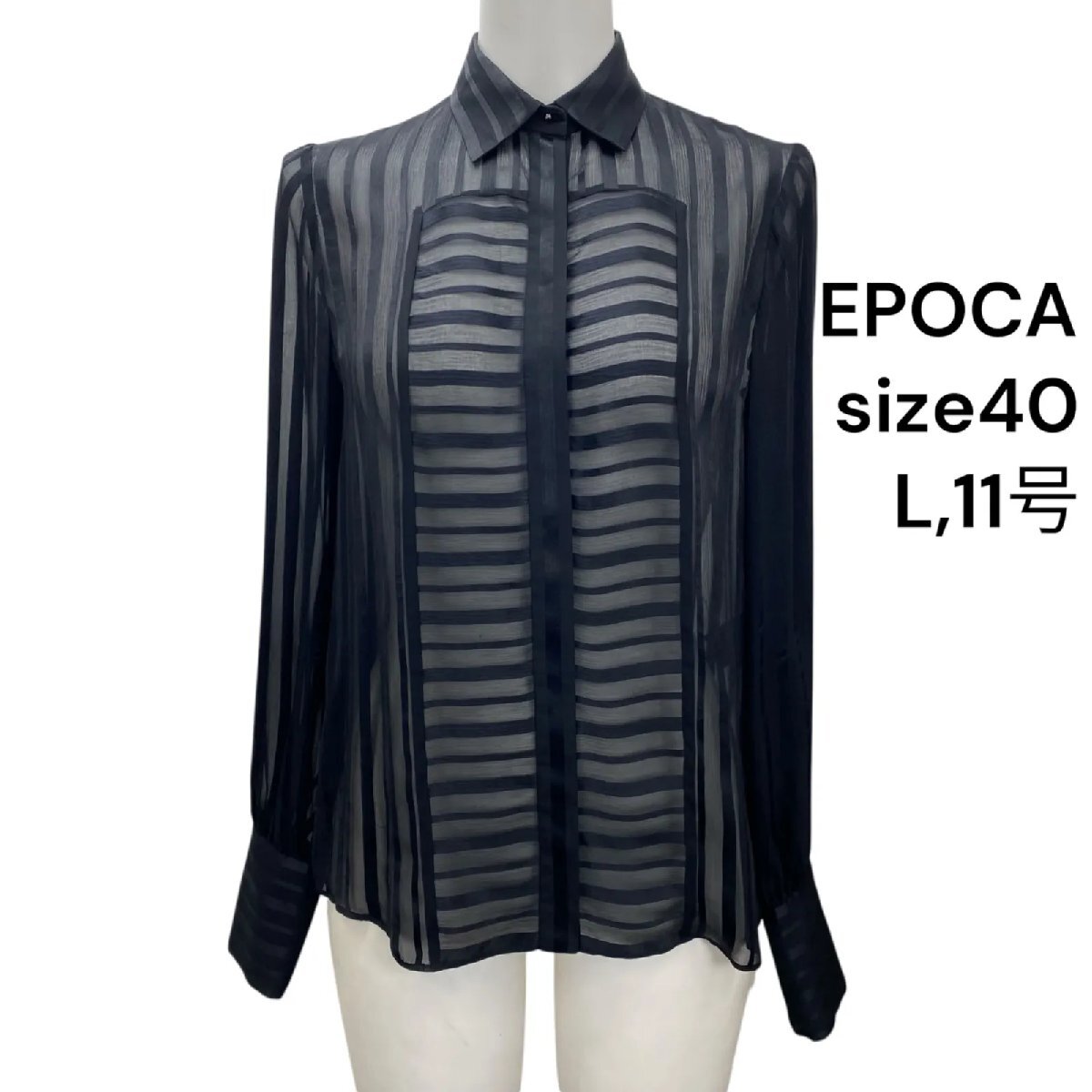 美品 エポカ EPOCA ブラウス シャツ 長袖 シルク ブラック シアー 40、L、11号 レディース S5T237