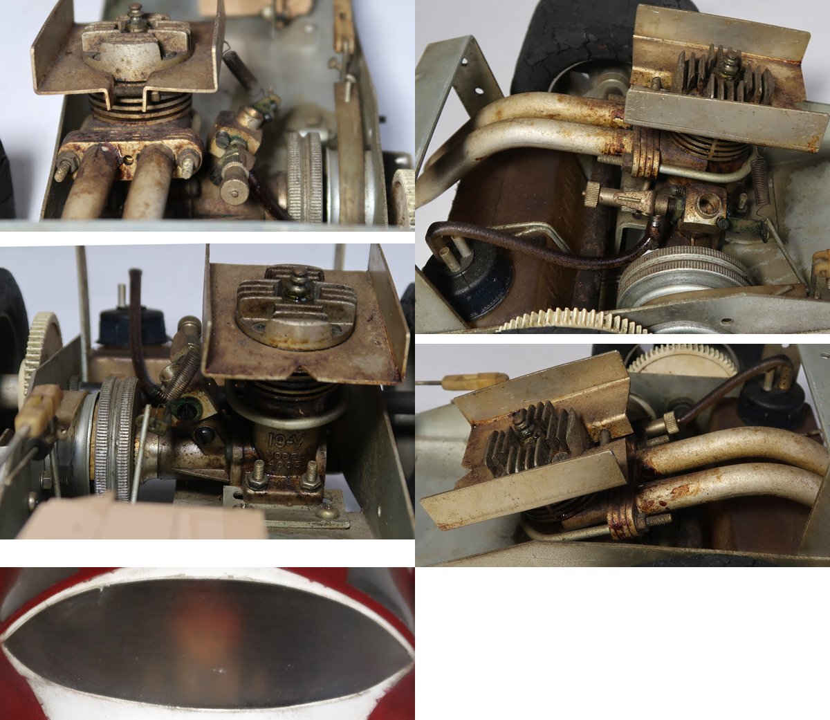 出品は画像の物のみです。他に必要なものがあればご自分でご用意ください。使用品ですの傷や汚れは所々にあります。エンジンを始動させるための機器がないのでエンジン及び実際の走行テストはできておりません。エンジン内部の状態はわかりません。受信機やサーボが使用できるのかわかりません。タイヤは劣化しております。ボディはきちんとはまっていません。はめるのには何かパーツが必要なのかもしれません。ボディ留め具のリアに割れがあります。後は画像をよくご覧ください。きちんと走行させるためには必要な機器とメンテナンスは必要です。分かる事は以上です。お取引後は一切のサポートはしておりませんので問題があればご自分でご対処ください。お取り引き後に説明以外の不足品や説明以外の破損や故障が有ったとしても返品は出来ませんしクレームもお受けできません。問題があれば全てご自分でご対処ください。