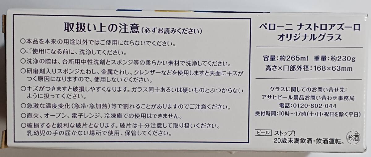 ペローニ ナストロアズーロ オリジナルグラス 容量:約265ml 重量:約230g 高さ×口部外径:168×63mm アサヒ PERONI 未開封