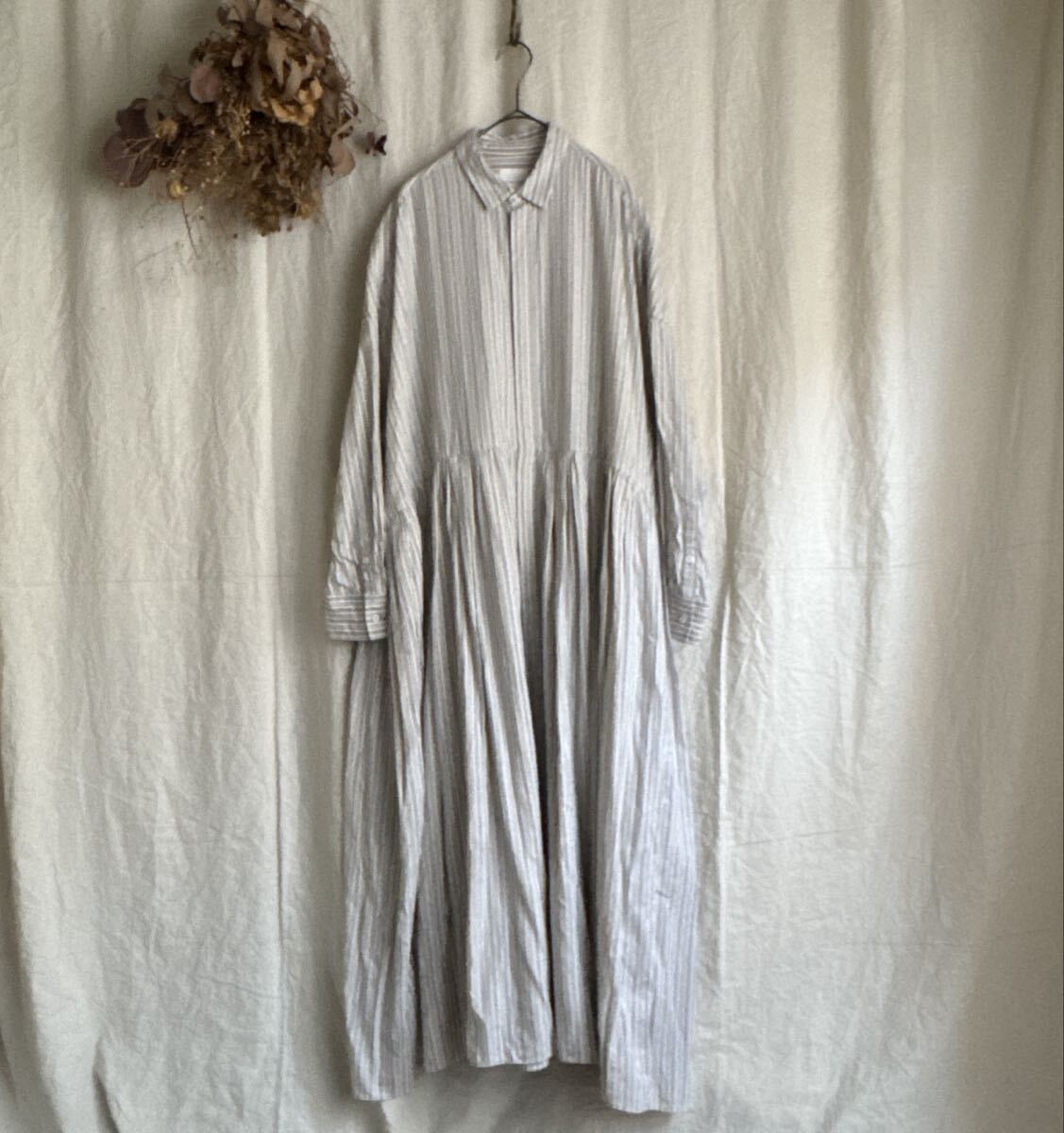TOUJOURS トゥジュー striped gather one piece ストライプ ギャザー ワンピース ドレス
