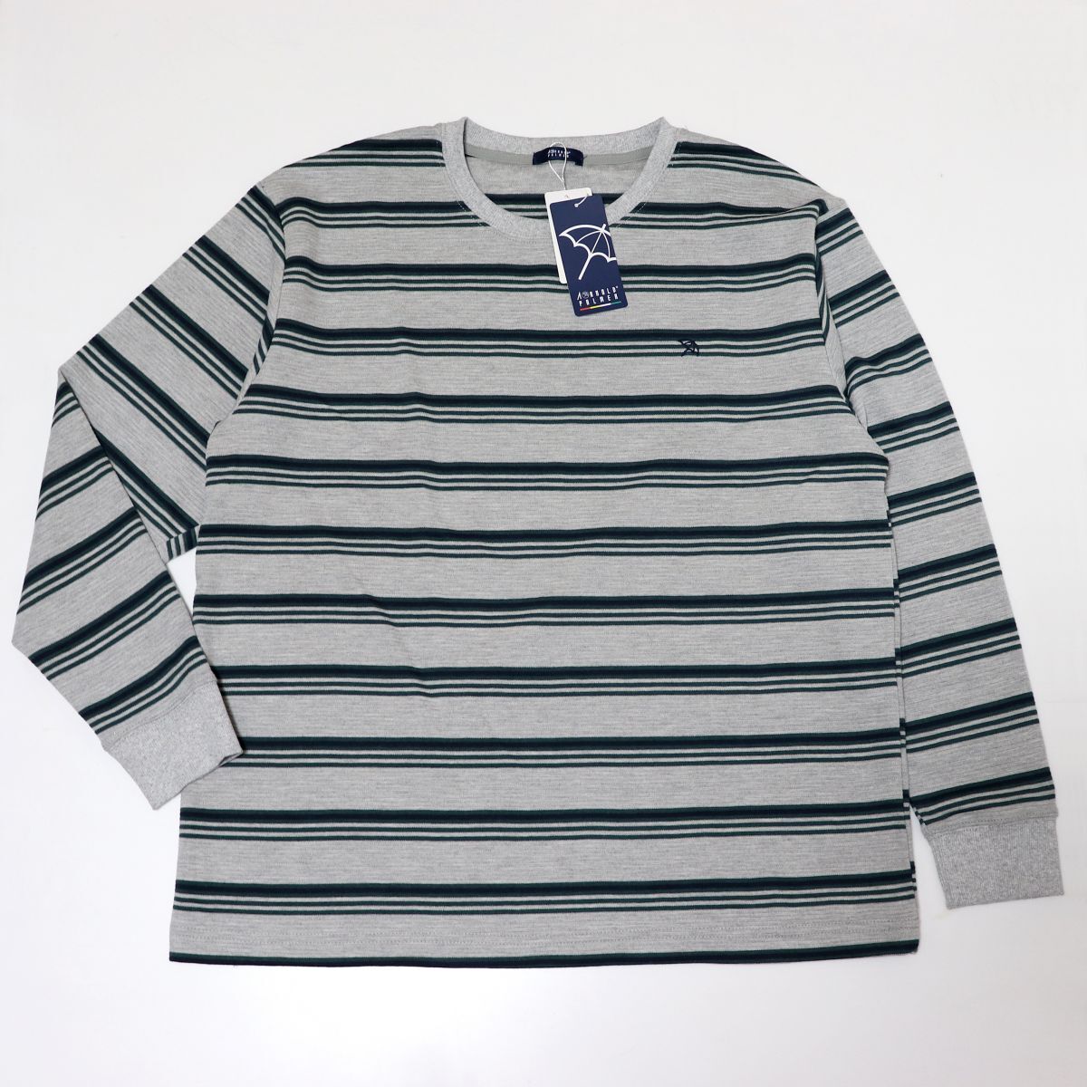 ★アーノルドパーマー ARNOLD PALMER 新品 メンズ カジュアル ボーダー 長袖 シャツ 灰 Lサイズ [8701515-04-L] 一 三 弐★QWER★