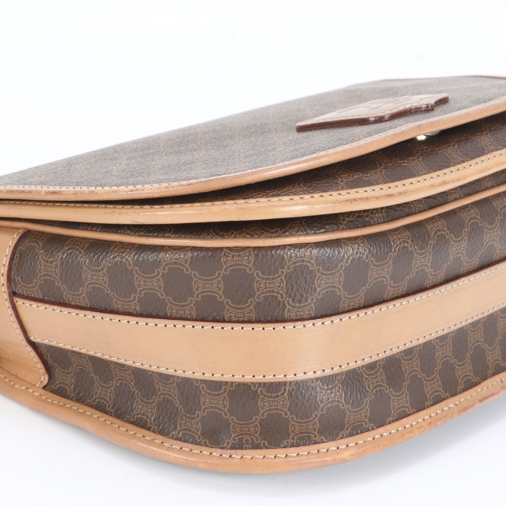 1円■美品■ヴィンテージ■セリーヌ■マカダム レザー ショルダーバッグ 斜め掛け クロスボディ ハンド トート レディース VEE CT12-8