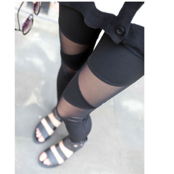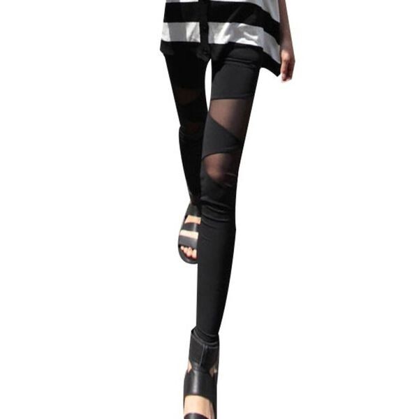 レギンス ハイウェスト 10分丈 レース付き レディース ブラック フリーサイズ 黒 女性 ストレッチ性生地 三角形型