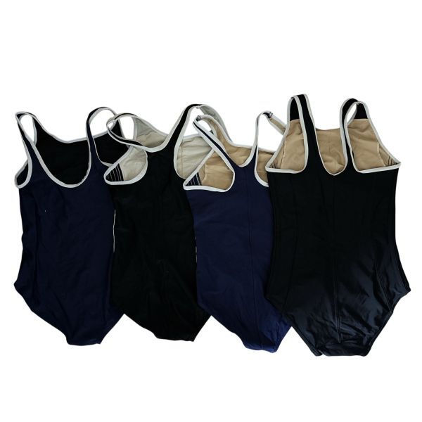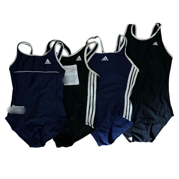 43【整理品リサイクル4枚セット】アディダスadidas女子競泳水着MLサイズ程度★光沢濃紺ネイビー黒ブラックホワイト★大きいサイズ男性も