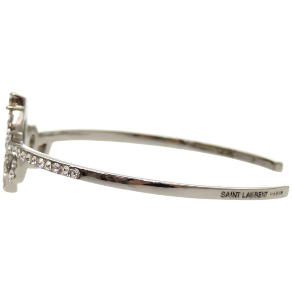 美品 サンローランパリ クリスタル ティアラ カフ メタル シルバー ブレスレット 0636 SAINT LAURENT PARIS