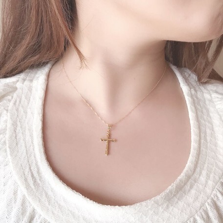18金のシンプルなクロスペンダント!クロスは永遠の定番モチーフです。本物の輝きをお楽しみください♪