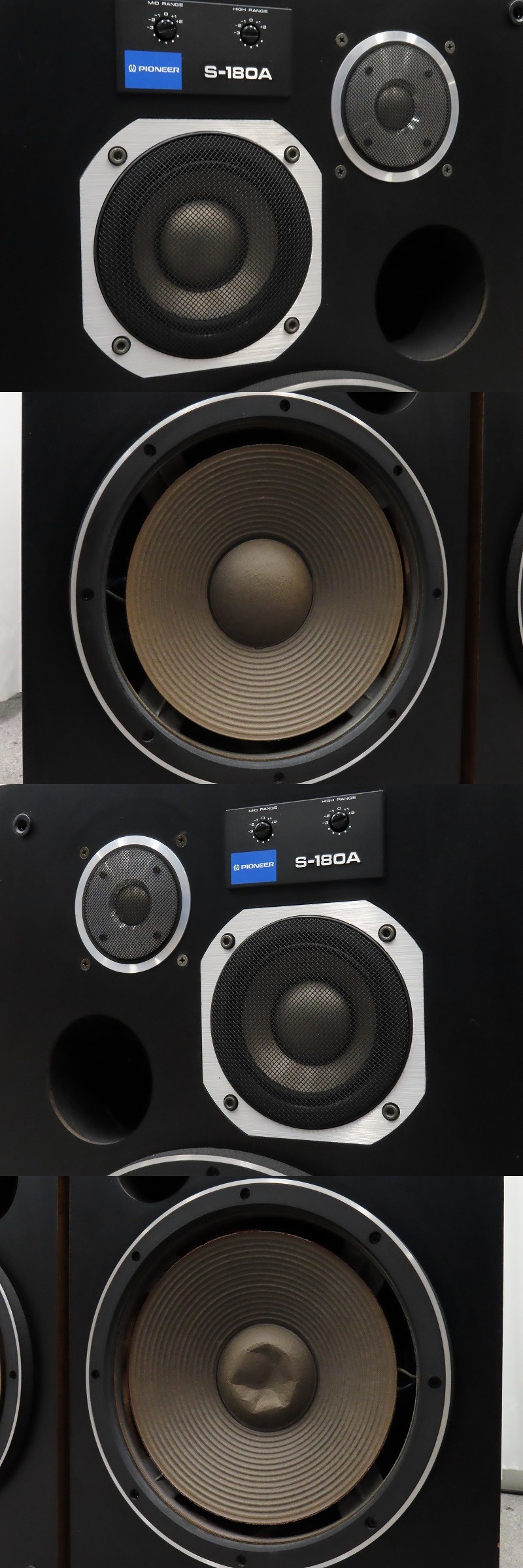 ■メーカー : Pioneer ■型番 : S-180A ■外径寸法 : W385×H650×D380mm ■重量 : 24.0kg ※弊社実測の為、多少の誤差はご了承下さい。 ※ペアでの出品となります。 【商品の状態 当店での確認内容】 音声出力は確認できておりますが、左右共にウーファーのエッジが劣化により欠損しております。 片方ウーファーのセンターキャップ/左右ユニットカバーにヘコミがございます。 ※上記により【現状商品】としての出品となります。 「商品の状態」に関しましては当方主観の目安となります。外観などは中古品で個人差もありますので詳細は画像にてご判断ください。 画像にて不明な点はご質問下さい。 出品商品は画像のものですべてになります。画像に写っているもの以外は付属いたしません。 ※注意※ ヤフオクのシステム上、送料表記が送料未定となっておりますが、送料に関しては全て有償となりますので下記を参照下さい。 【送料 全国一律 11,330 円 沖縄、離島は別途お見積り】 ※送料がお得になるサービスです(下取りシステムのご案内です) 当ストアでは商品を安全にお届け出来るよう提携運送会社と協議の上、発泡緩衝材や強度段ボールの使用等 運送会社が指定する梱包方法や資材を採用しております。 より安全にお届け出来るよう商品仕様により梱包サイズが大きくなる場合や個口数が増える事がございます。 【当ストアオークションルールを入札前に必ずご確認ください。】 【落札後の取引手順】 ・落札後は取引ナビにて、必要事項をご入力後、送信ください。 取引終了後48時間(土、日は除く)以内に入力をお願い致します。 ※ご連絡が頂けない場合は落札者様都合でのキャンセルとさせていただきます。 ・落札代金(商品代金+消費税+送料)の入金をお願い致します。 ※大型商品の場合は送料確定後の決済となる為取引ナビを入力頂き、当ストアより送料のご案内が来るまでお待ちください。(土曜、日曜、祝日の場合は翌営業日より順次ご案内いたします) ・お支払い方法は※クレジットカード/※PayPay残高/※PayPayクレジット/PayPay銀行/ゆうちょ銀行のみです。 ※商品代金引換(代引き)のお取り扱いはしておりません。 ※領収証の発行が必要な方はご連絡ください。 ※銀行振込の際の振込手数料はご負担願います。 ・入金確認後に出荷手配を致します。 (原則入金確認後3営業日以内に発送いたしますが、大型や重量のある製品はお時間をいただく場合もございます。) ・発送は当店指定の運送会社の元払いのみでの発送となります。 ※他の運送会社、送料代引き等は致しかねます。 ※落札者様ご自身での運送会社の手配いただく事も可能ですが荷物事故の責任の所在の問題上、梱包は致しかねます。 ※店頭にお越し頂き手渡しも可能(福岡市早良区)です。ご希望の方はご落札後にご連絡下さい。 ・大型/重量物商品の送料につきましては商品の特性上、荷降ろし状況等により送料が大きく前後し運送業者に別途見積りが必要な為、早めのお問い合わせにてお見積り上、入札をお願い致します。 【初期不良の保証について】 ・商品到着後の初期動作不良、また配送中の事故による破損、不具合が有る場合は、商品発送後10日以内に当ストアまでご連絡ください。当ストアでは修理での対応を優先させて頂きますが、修理不可の場合は全額返金させて頂きます。 (商品代金+消費税+送料のお支払い頂いた金額となります) 【初期不良の保証の対象外について】 次の場合は保証の対象外となりますのご留意ください ・ジャンク商品、現状商品、難あり商品での出品商品。 ※難あり商品に関しましては動作確認時に一部動作不良が確認された商品になり、記載している動作確認以外にも、動作不良がある可能性もございます。こちらに関しましても保証対象外となりますことをご理解ください。 ・年代物のオーディオなどで、当店にてわからない範囲で部品が交換されている場合 ・楽器類の特殊機材(マイクロスコープ等)での確認までは行っておりません。気になる方は事前にご質問いただくか、入札をお控えください。 ※初期不良に関しましては【商品の状態】に記載のもの、またそれによって起因する動作不良は対象外です。 ※商品発送後10日を過ぎてのご連絡は対応が出来ませんので、商品が到着しましたらお早めに確認をお願い致します。 【メーカー保証の加入・継承】 ・未使用品、展示品やメーカー保証期間が残っている商品に関しまして、メーカー保証の加入、継承が必要な方は、落札後取引ナビ内にて当ストアにお知らせください。商品発送までにご連絡いただけない場合、メーカー保証の手続きを承れない場合があります。 【評価について】 ・評価不要の場合、必ず取引ナビの「要望欄」にてお知らせください。それ以外でご連絡をいただいた場合、対応できない可能性がございます。一度行った評価はシステム上取り消しが行えませんのでご了承ください。 【入札削除・キャンセルについて】 ・入札後はトラブル