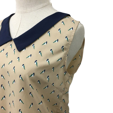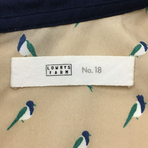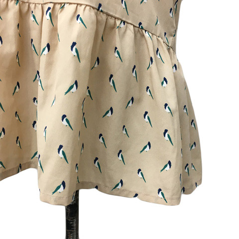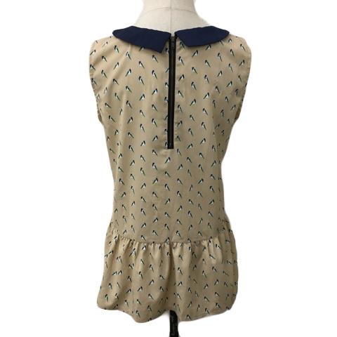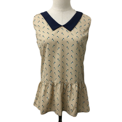 ローリーズファーム LOWRYS FARM ブラウス シャツ プルオーバー 総柄 ギャザー ペプラム ノースリーブ F ベージュ 紺 ネイビー レディース