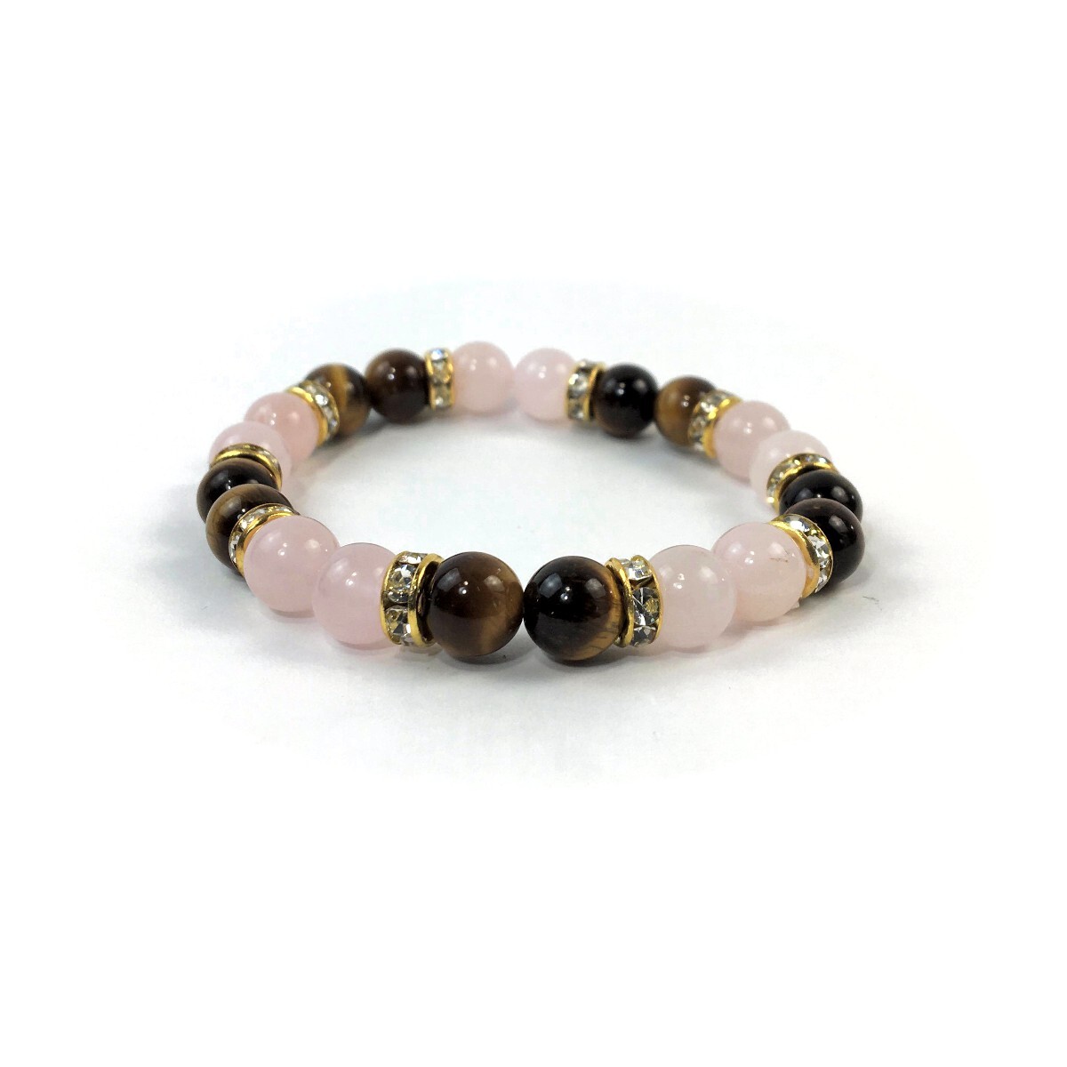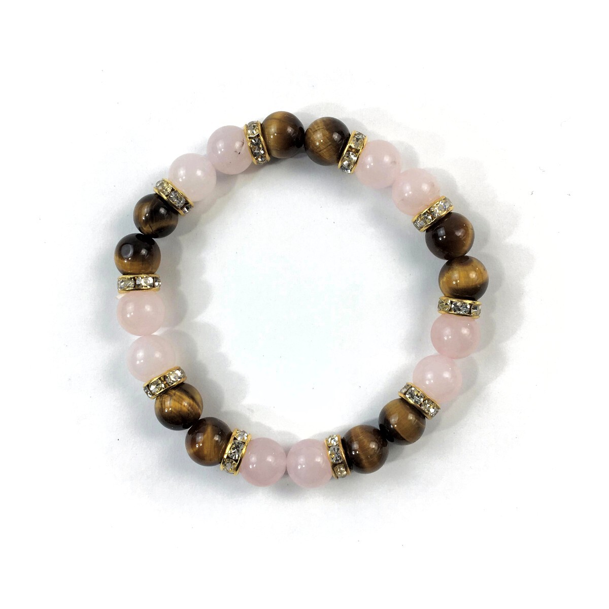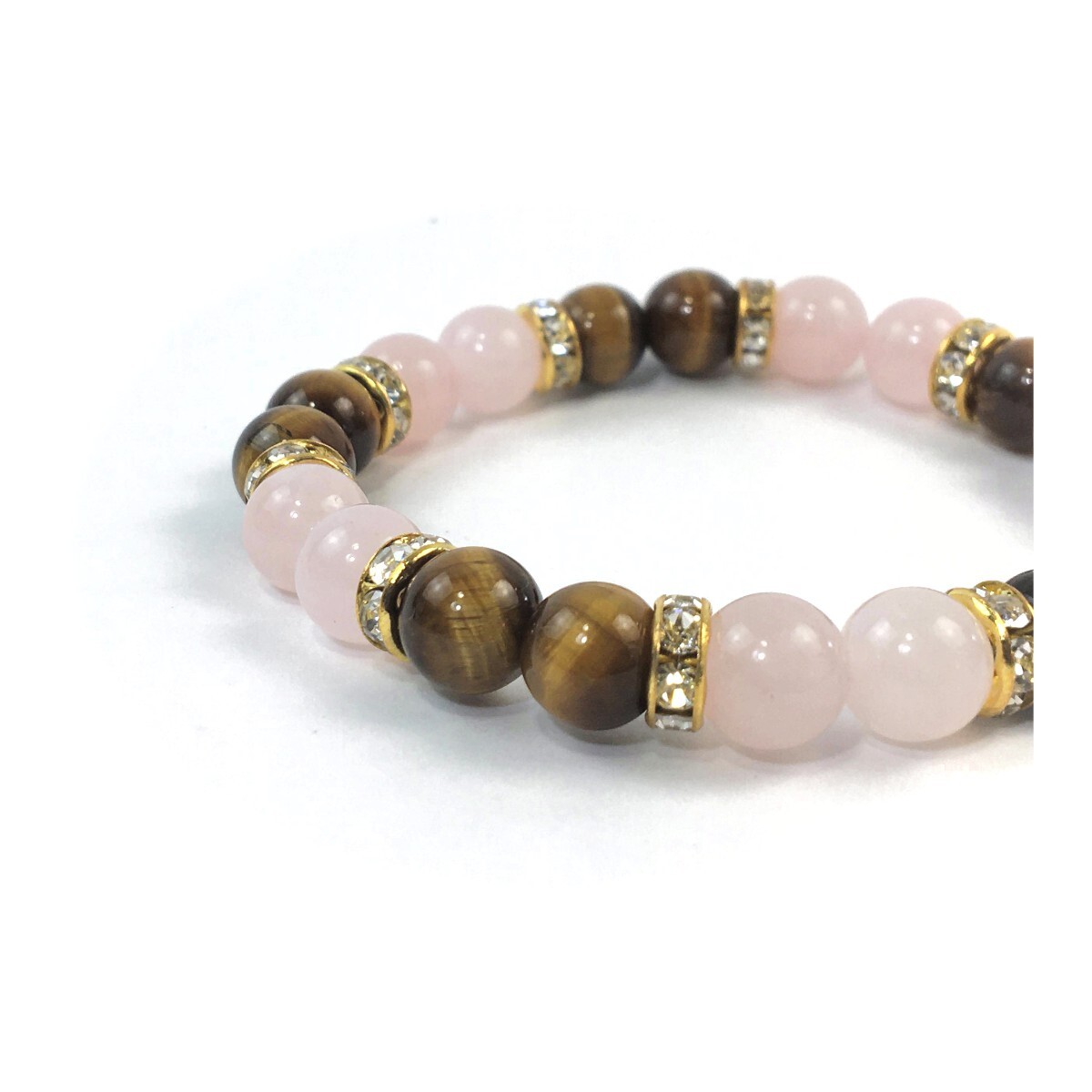 ローズクォーツ&タイガーアイ パワーストーン ブレスレット 8mm 天然石ブレス ゴールド /開運 浄化 美・愛 恋愛運 効果 レディース ピンク