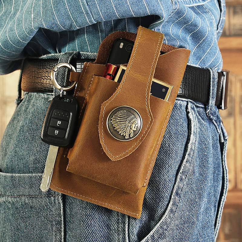 レトロ タクティカル ボディバッグ 多機能ポケット 牛革 クレイジーホースレザー ベルトバッグ アウトドア