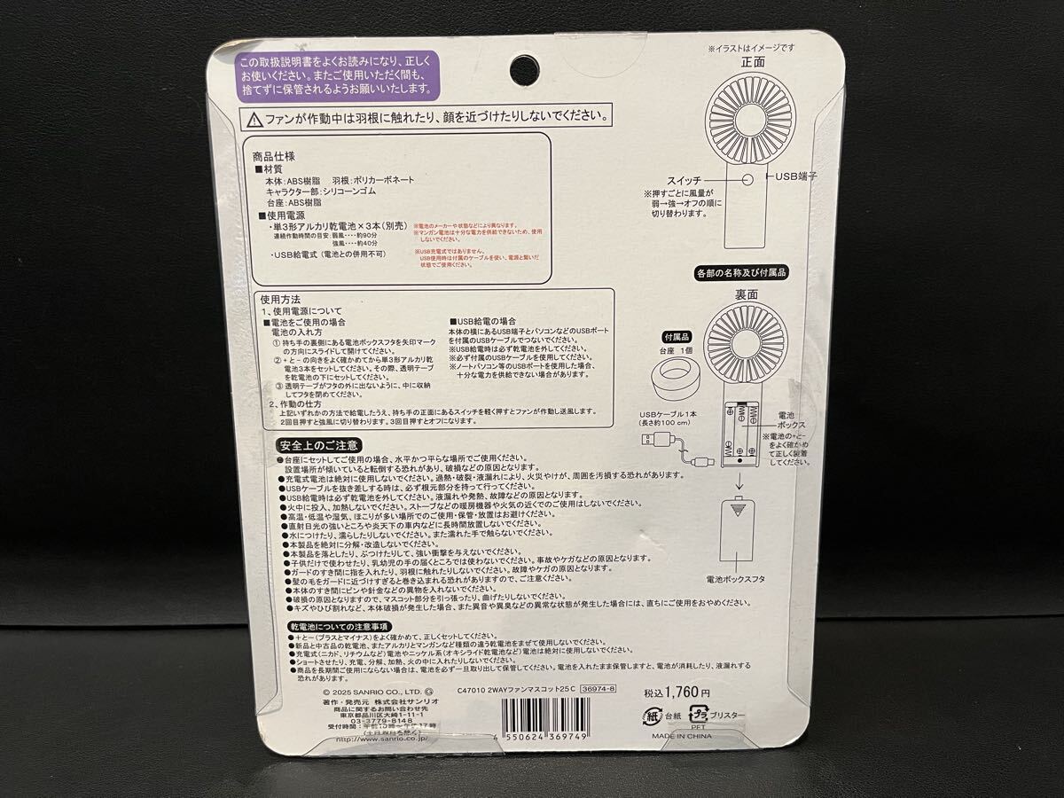 2WAYファン ハンディファン 携帯扇風機 デスクファン クロミ kuromi サンリオ SANRIO