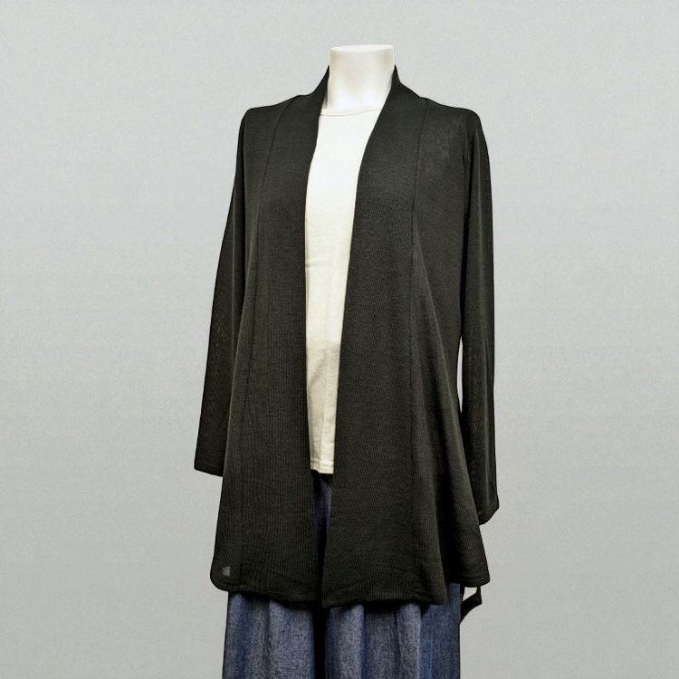 【秋物新作】ドレープヘム ロングカーディガン ニットソー M~L・ブラック 550401