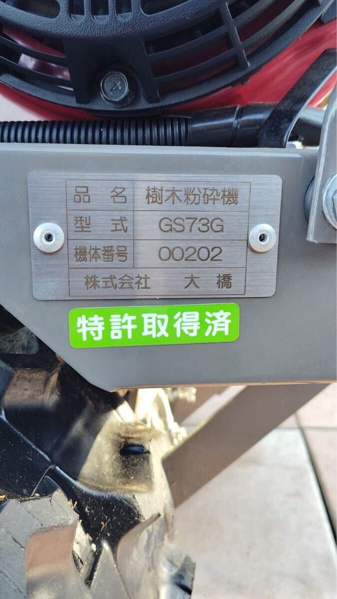 千葉県富里より出品します、大橋整ウッドチッパーGS73Gの後期モデルです。