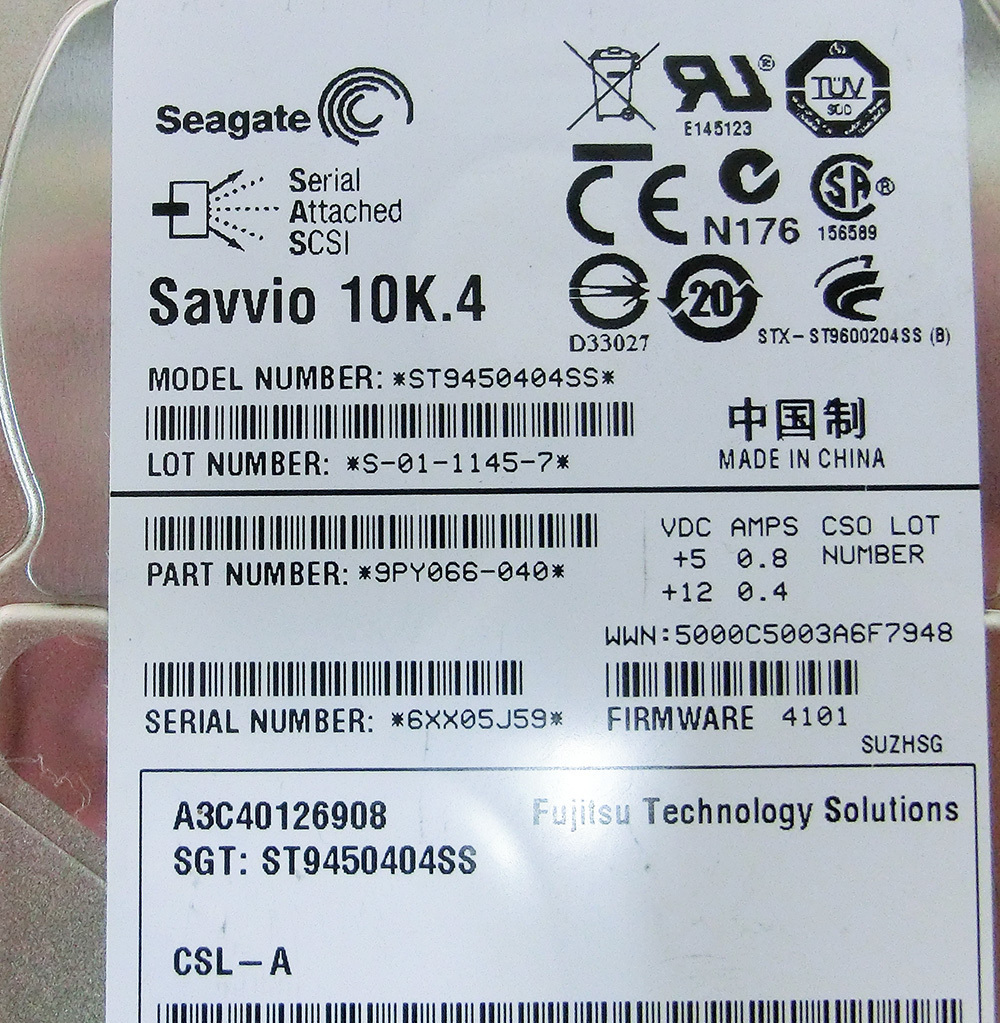 富士通サーバPrimergyシリーズ対応 純正マウンタ装着済み SASハードディスク 2個セット 2.5インチ 450GB 10K ST9450404SS | |