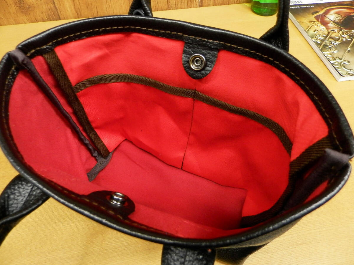 ☆XSサイズ☆黒シュリンクレザー×赤裏地のミニトートバッグ姫路レザー日本製ハンドメイド本革 牛革 カスタム