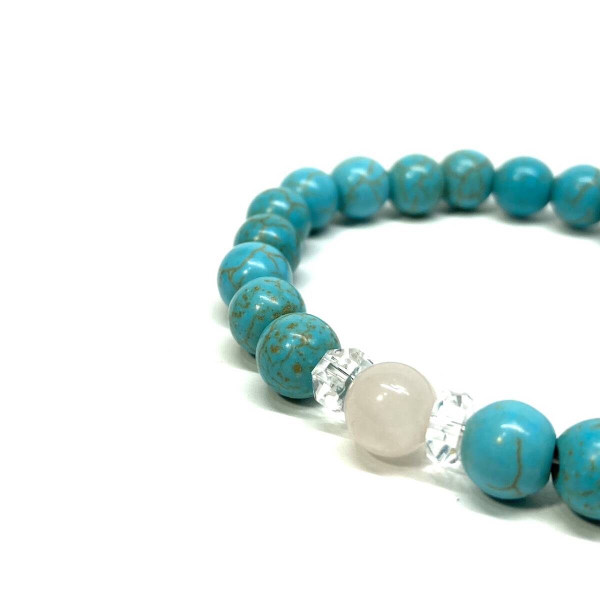 ローズクォーツ&ターコイズ ブレスレット パワーストーン レディース 女性 金運 恋愛 開運 数珠ブレス お守り