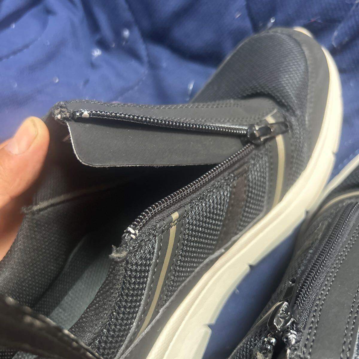 1回のみ着用の美品です♪軽量でクッション性抜群!脱ぎ履きしやすいサイドジッパー付きスリッポンタイプで履き心地抜群のウォーキングシューズです♪発送はレターパックで