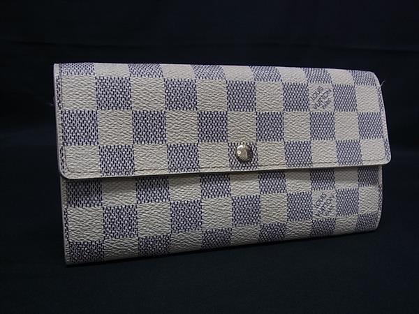1円 LOUIS VUITTON ルイヴィトン N61735 ダミエアズール ポルトフォイユサラ 二つ折り 長財布 ウォレット 小銭入れ アイボリー系 FU2314