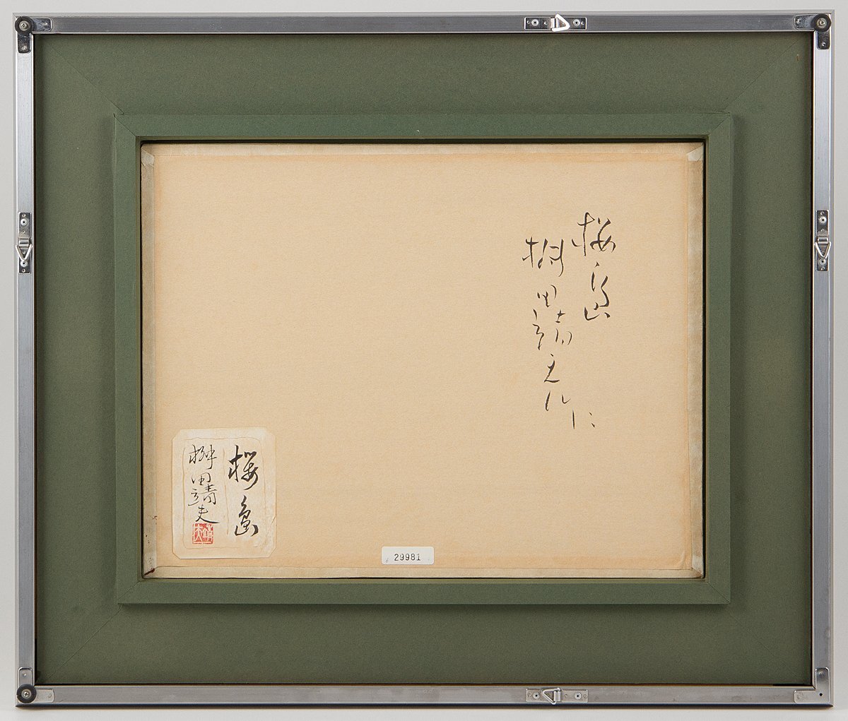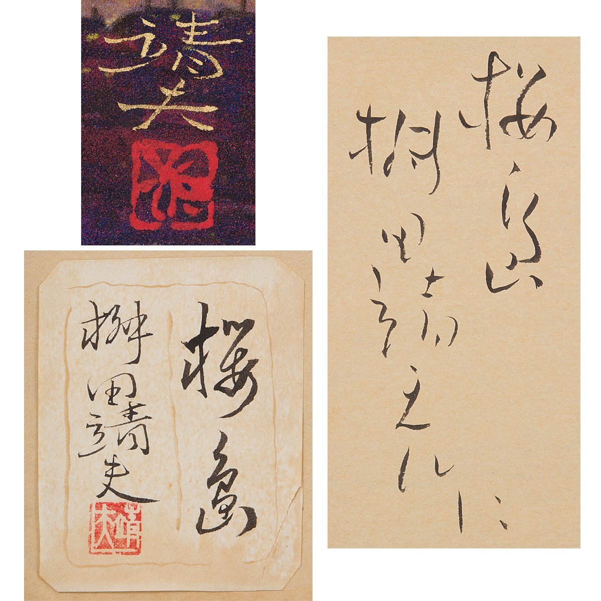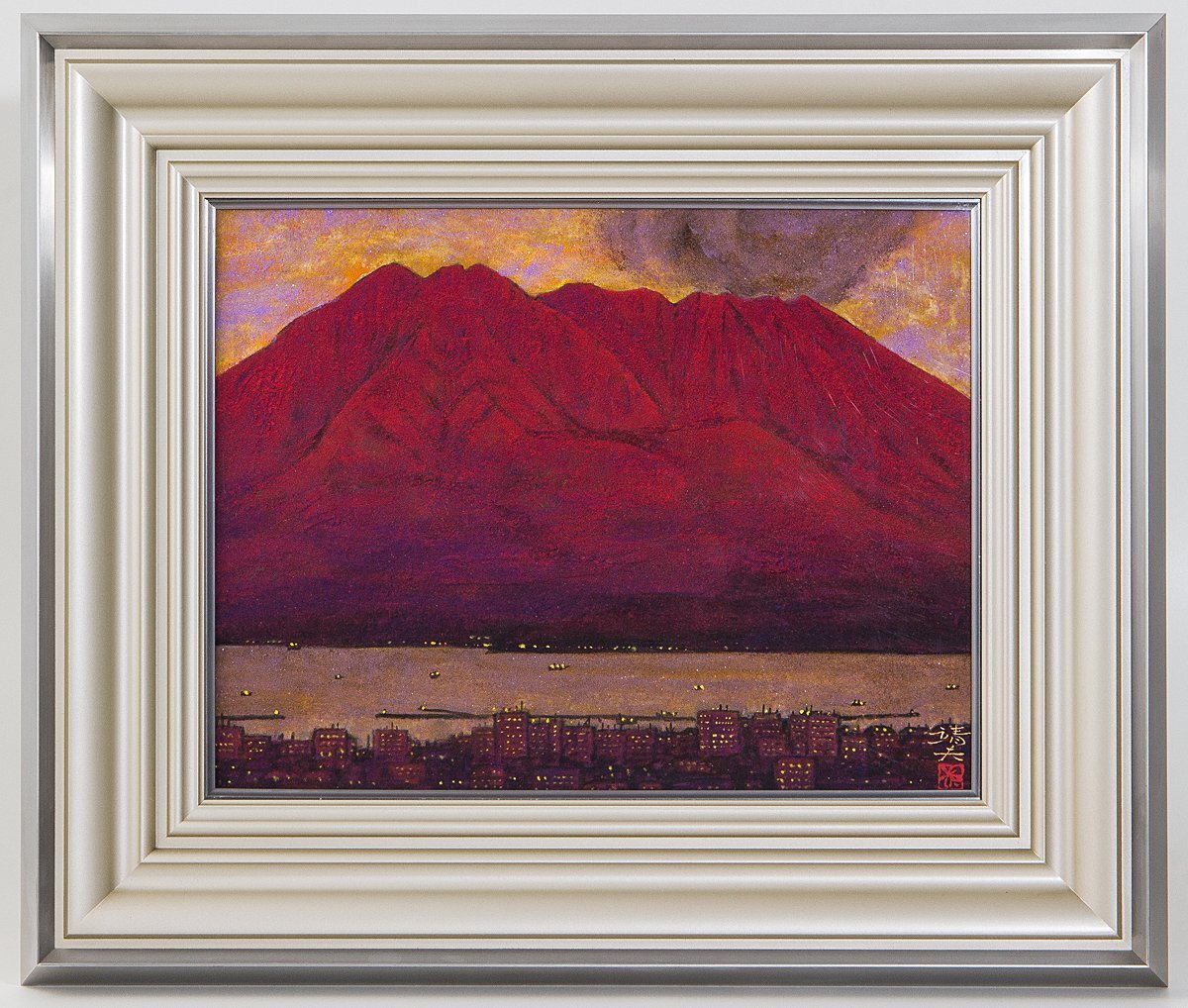 品名 真作 桝田靖夫 『桜島』 日本画 彩色 6号 共シール 額装