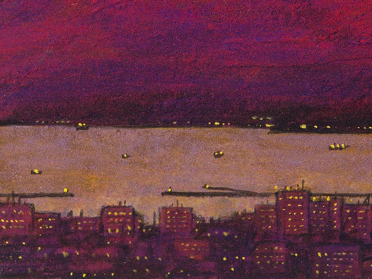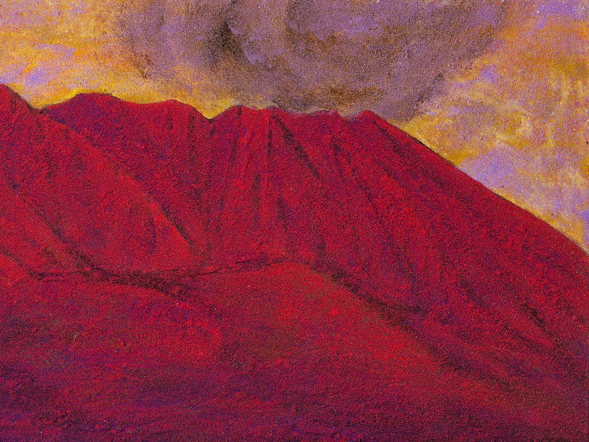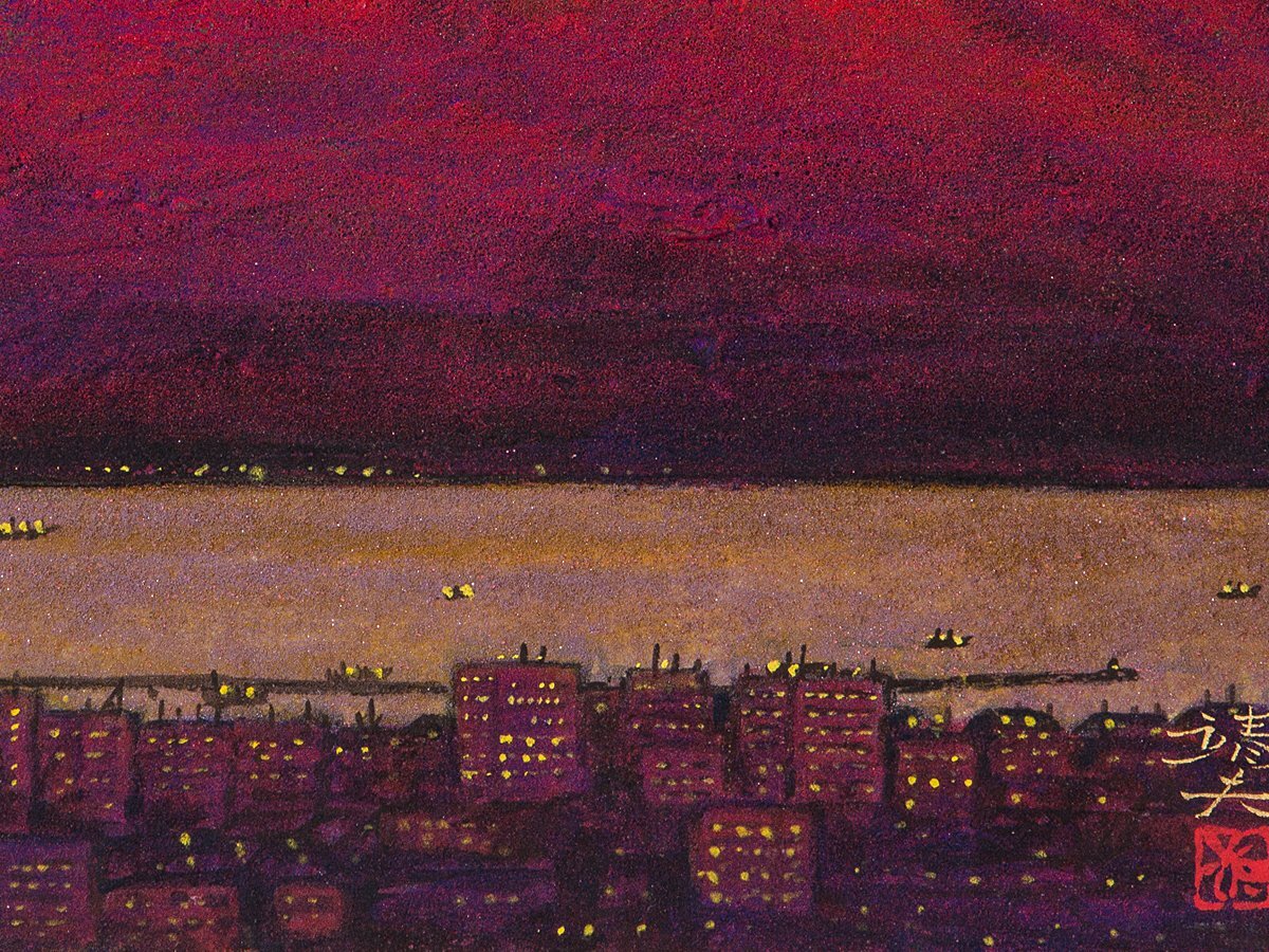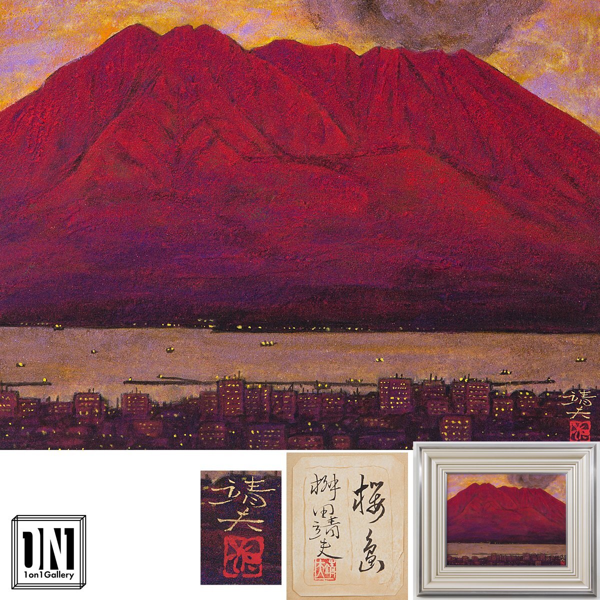 【1on1】真作 桝田靖夫 『桜島』 日本画 彩色 6号 共シール 額装 / 日展会友 師:伊東深水