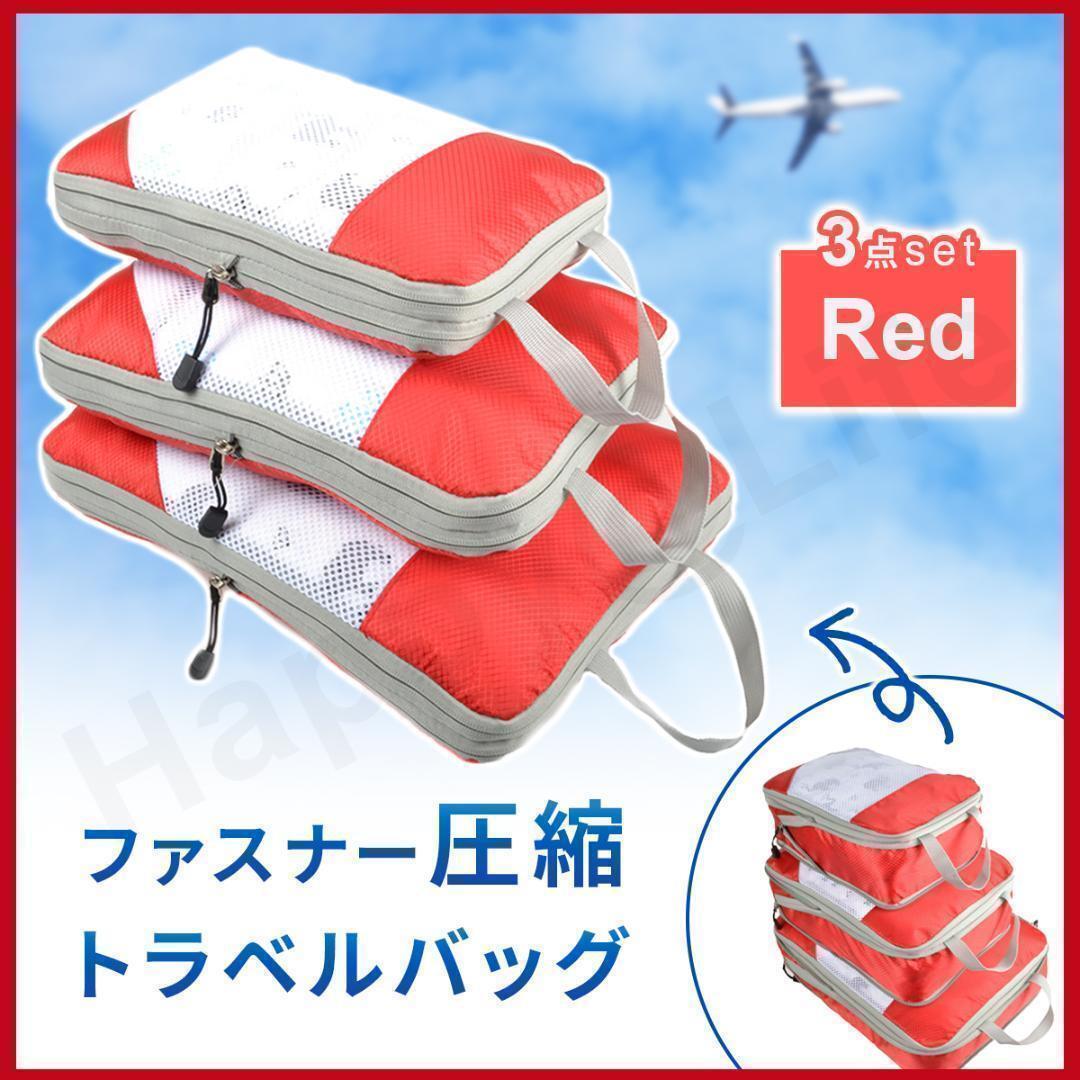 ファスナーをしめるだけで簡単圧縮! 圧縮バッグとして一家に一つは欲しいトラベルポーチ3点セット(S,M,L)