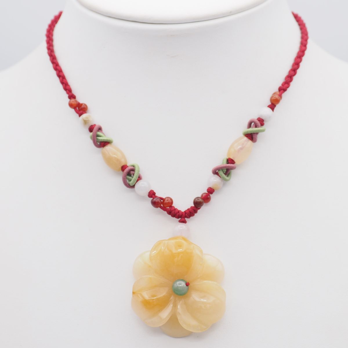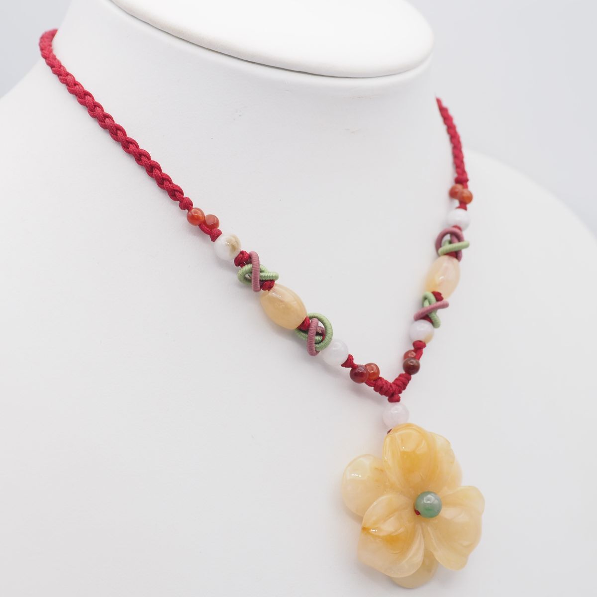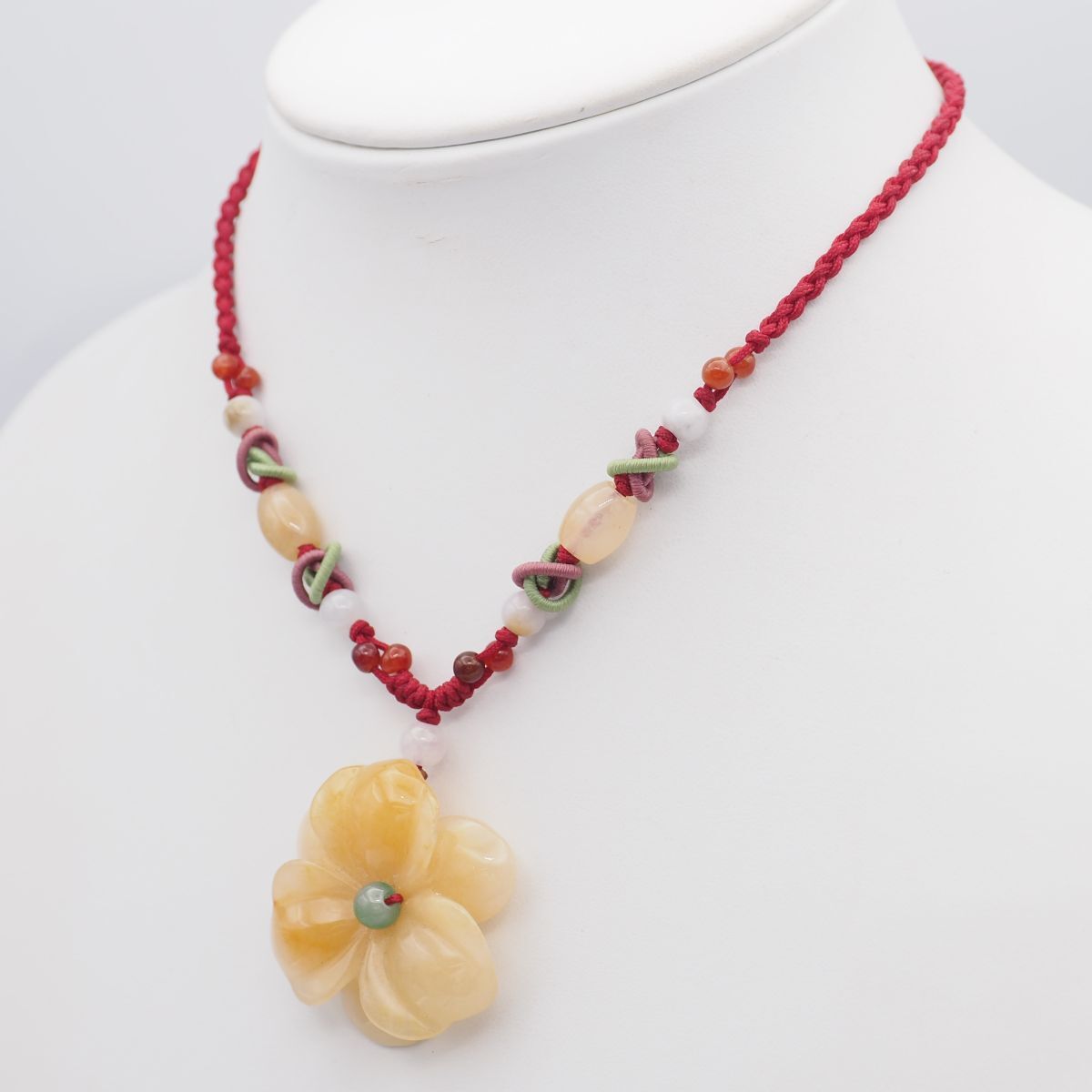 F787 天然石 ネックレス 花彫刻 紐 デザイン アンティーク