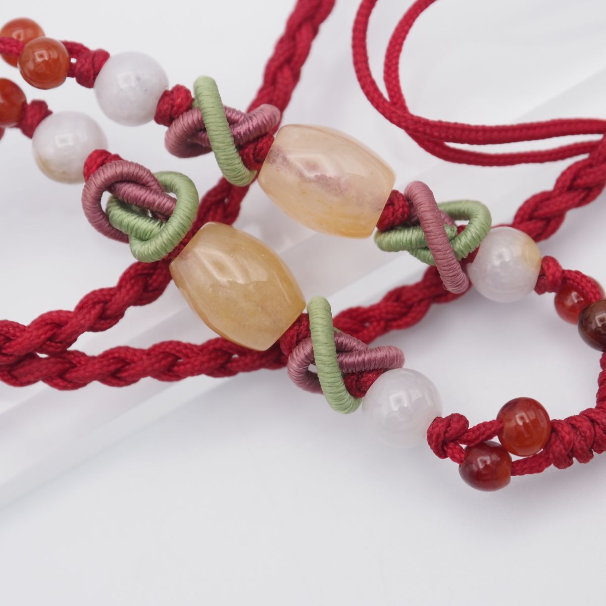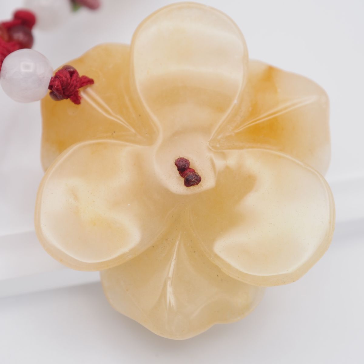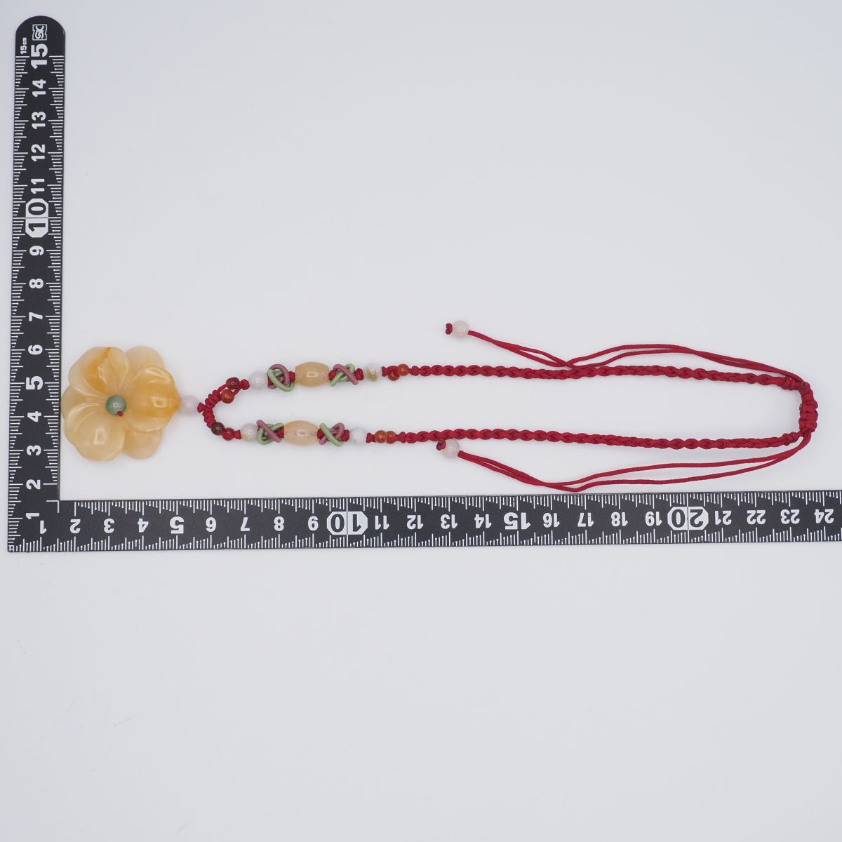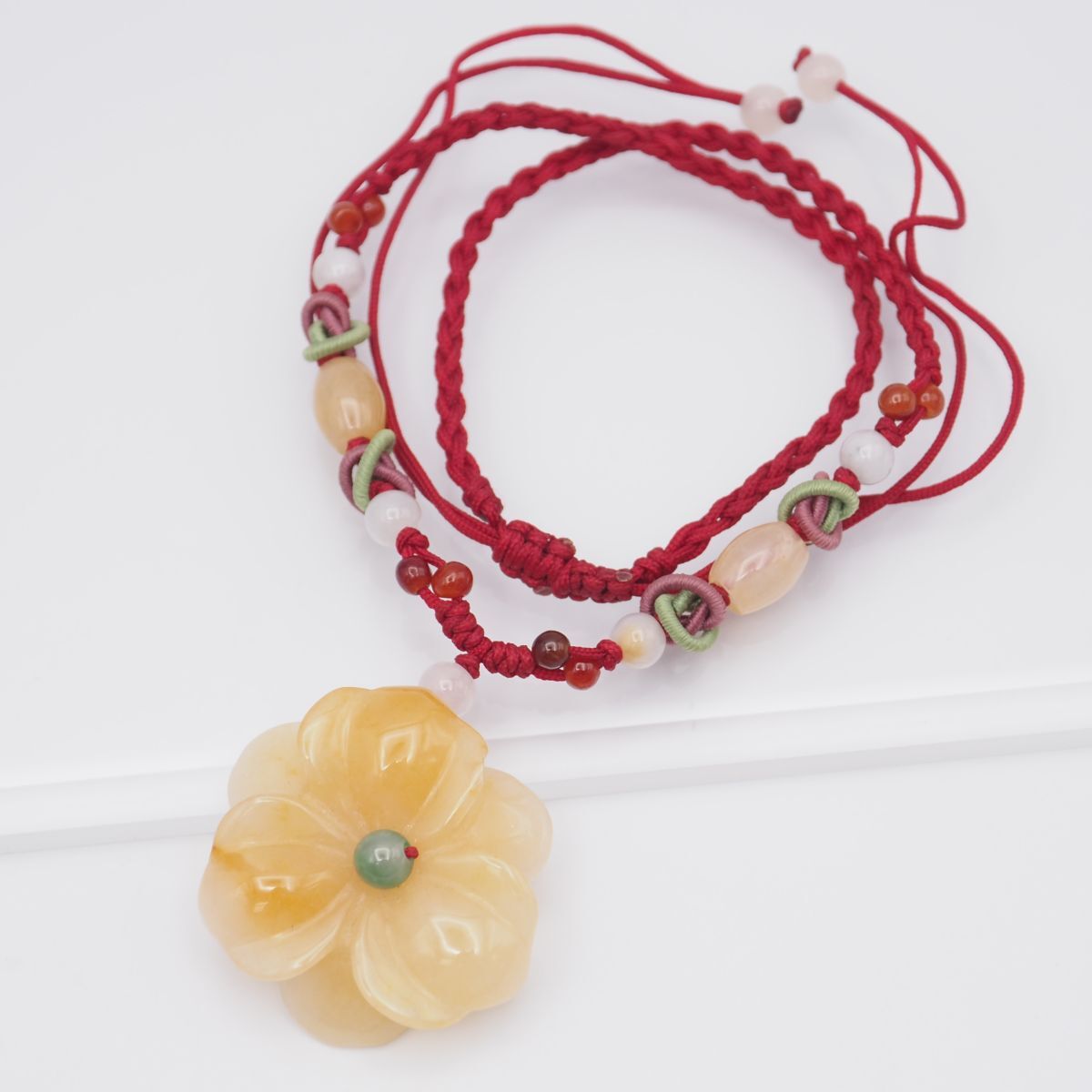 F787 天然石 ネックレス 花彫刻 紐 デザイン アンティーク