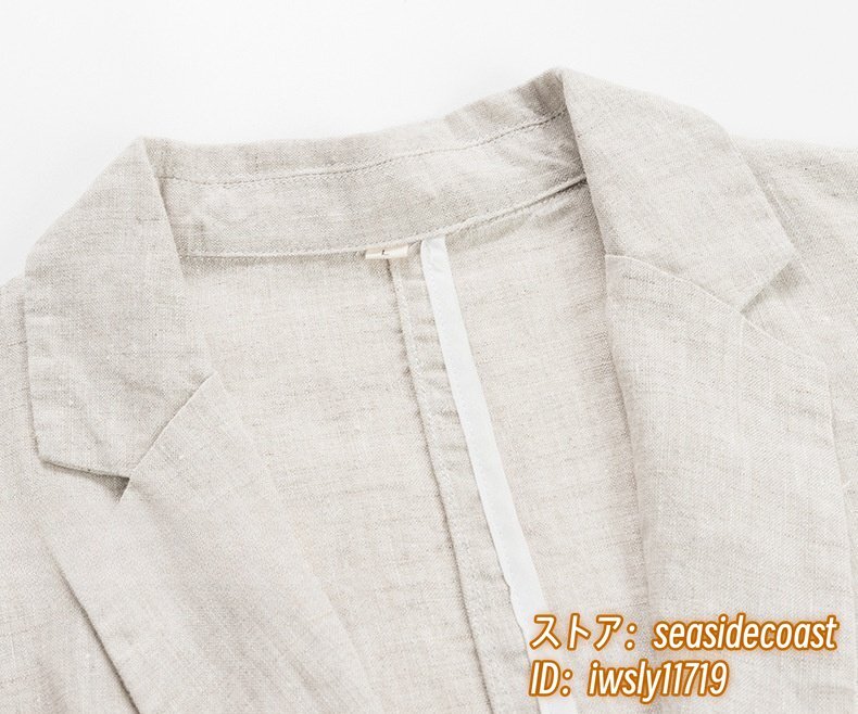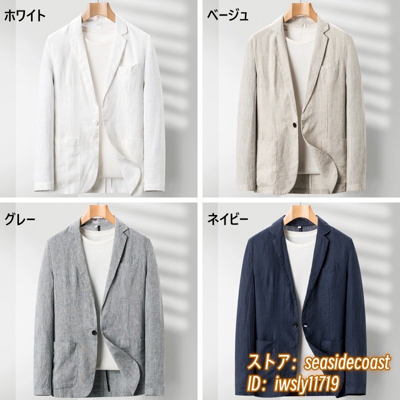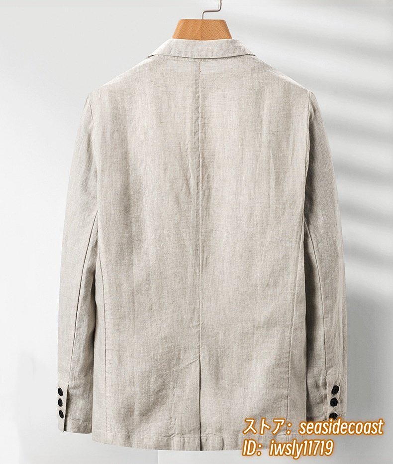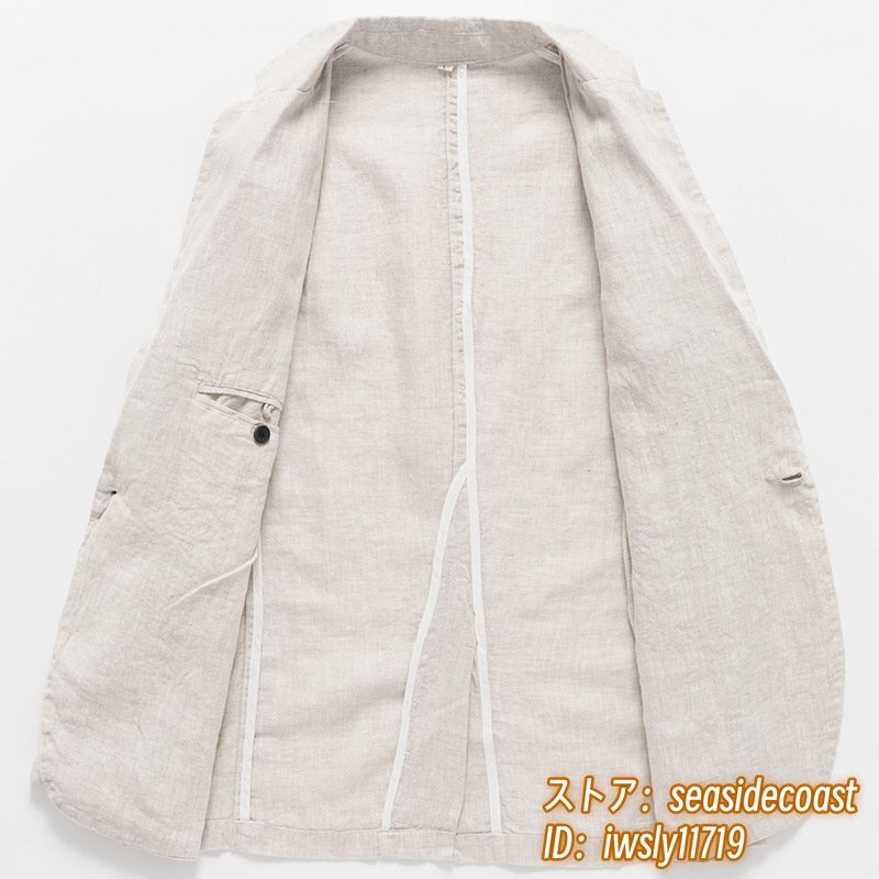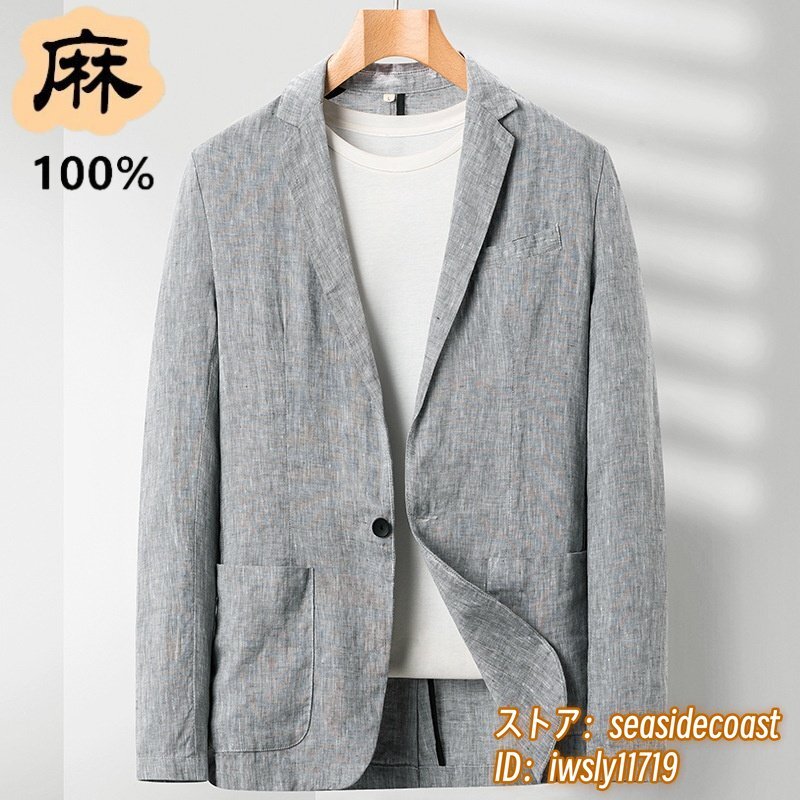 入手困難 リネン テーラードジャケット 最高級 麻100% メンズ ブレザー 薄手スーツ 紳士服 センターベンツ 春夏アウター 四色 グレー 3XL