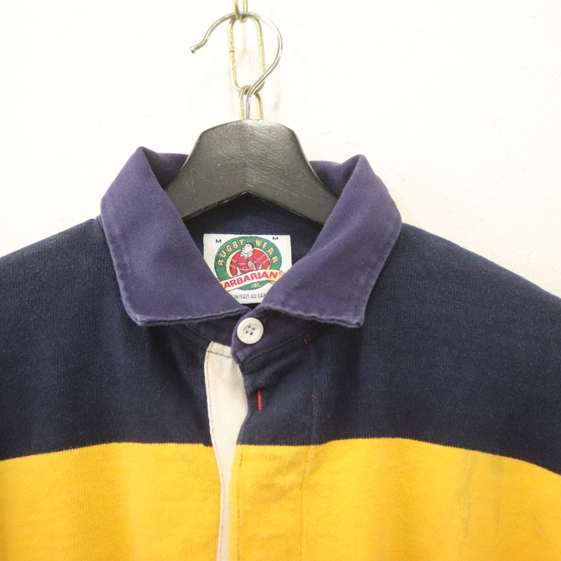 q129 2000年代製 BARBARIAN バーバリアン 長袖ラガーシャツ■00s 表記Mサイズ マルチカラー 刺繍 アメカジ ストリート 古着 激安 古着卸