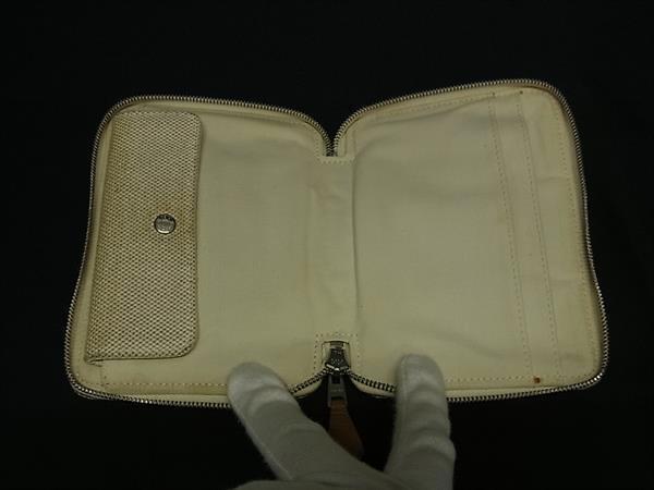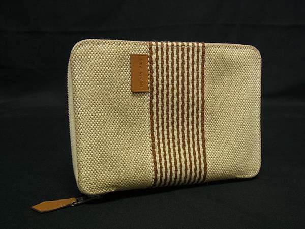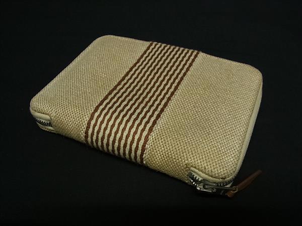 1円 HERMES エルメス ニューフールトゥ パースPM キャンバス シルバー金具 ラウンドファスナー 財布 ウォレット ベージュ系 FU2440
