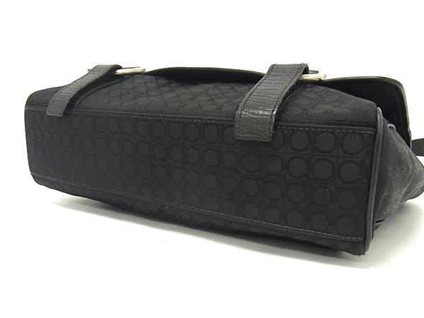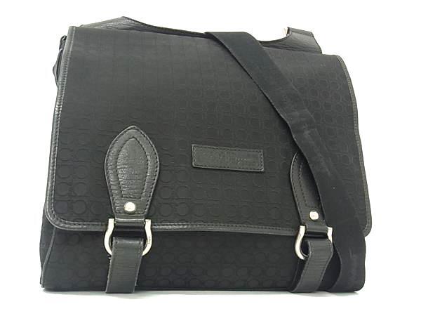 1円 Salvatore Ferragamo フェラガモ ガンチーニ柄 ナイロンキャンバス×レザー ショルダーバッグ 斜め掛け ブラック系 FV0322