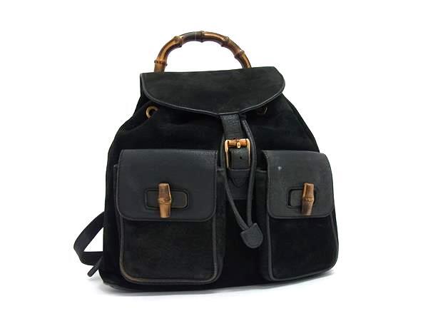 1円 GUCCI グッチ バンブー レザー ターンロック リュックサック バックパック メンズ レディース ブラック系 FV0334