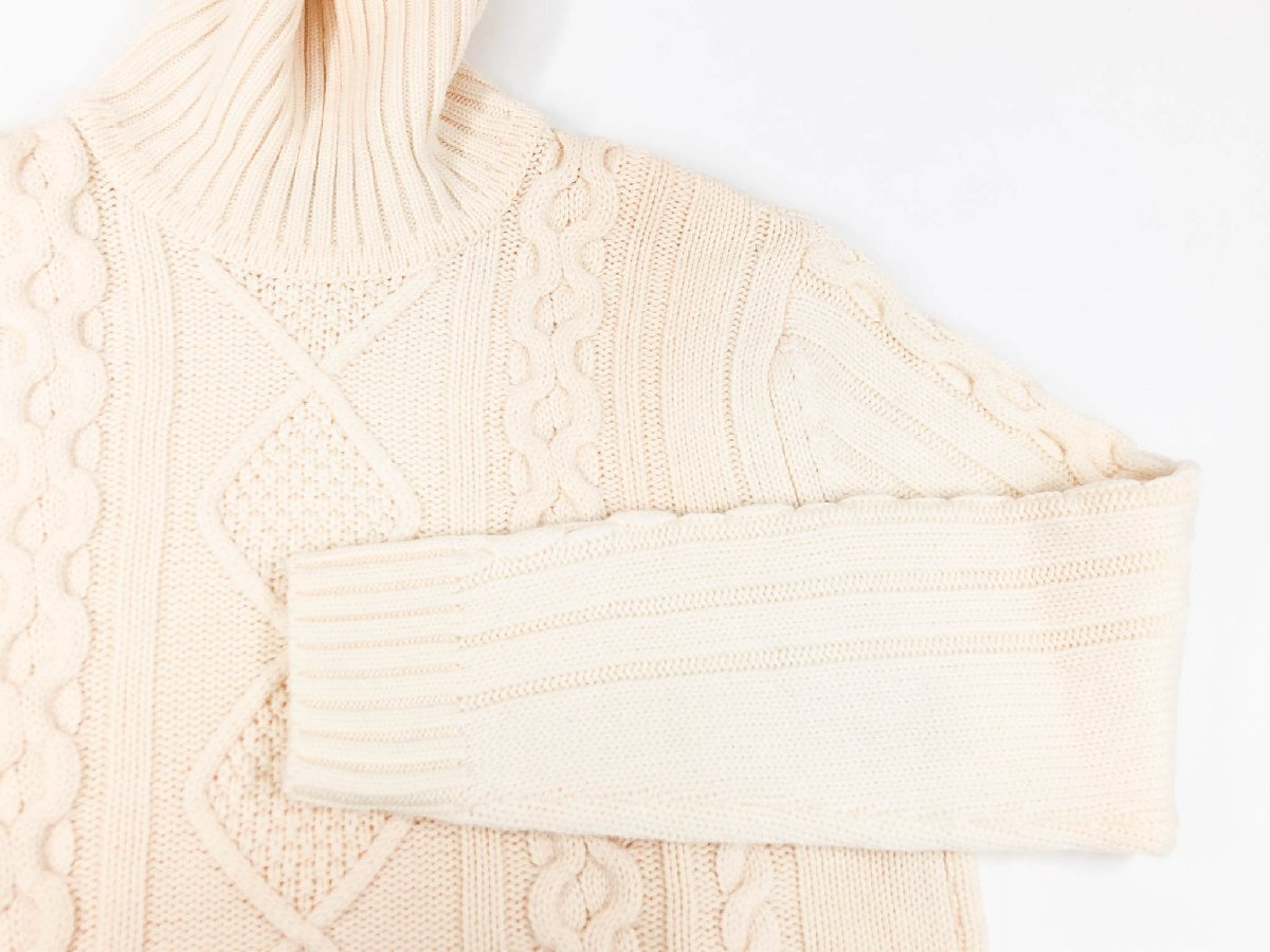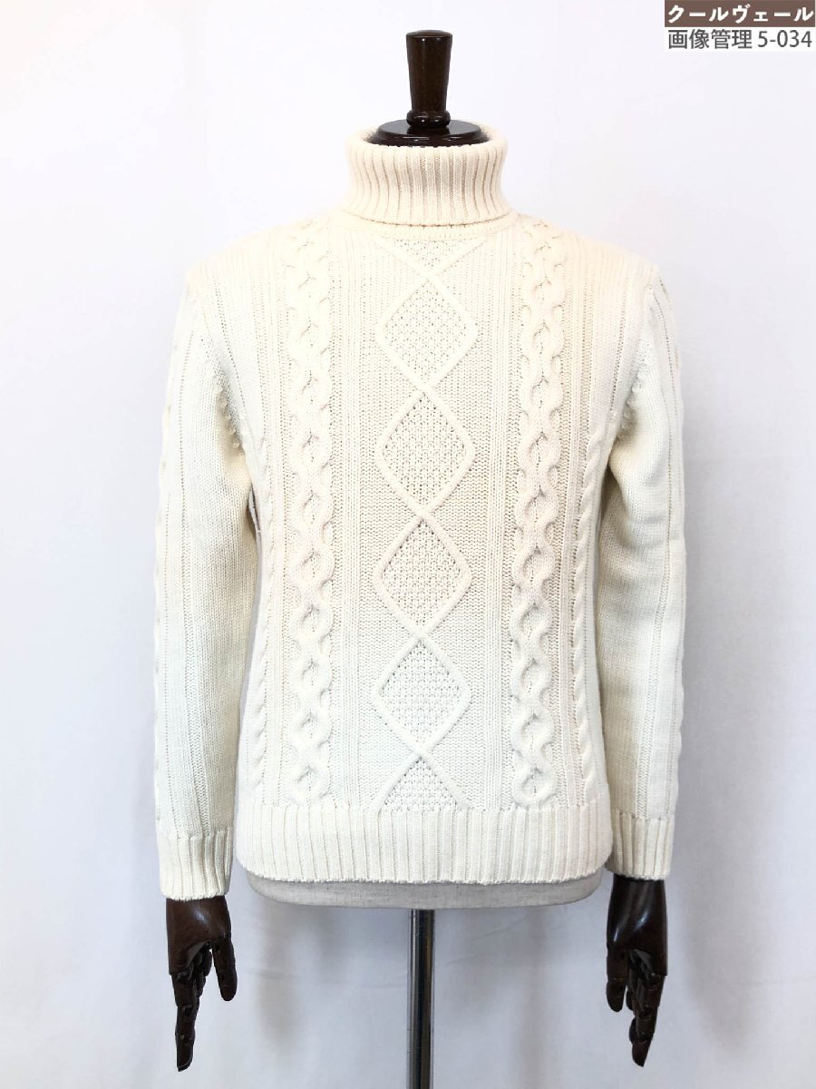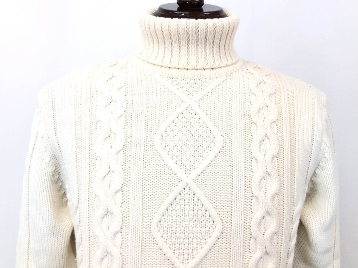【BARNEYS NEWYORK バーニーズニューヨーク】 ケーブル編み タートルネックニット (メンズ) sizeL相当 ホワイト系 イタリア製 ◇33MN6140◇