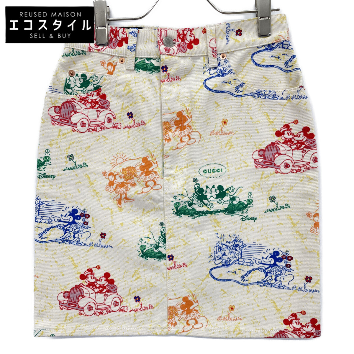 GUCCI グッチ 【×ディズニー】539778 アイボリー カラフルプリントミニデニムスカート マルチカラー 38 スカート デニム レディース 中古