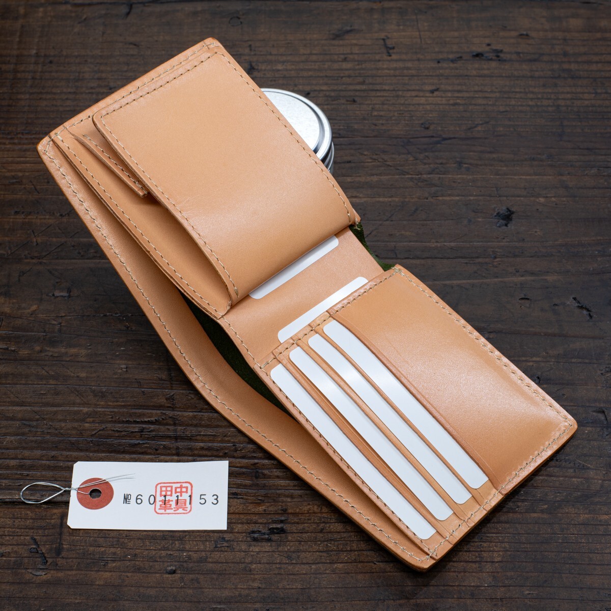 深緑【牛革】シンプル 二つ折り 丘染め メンズ 財布 二つ折り財布 新品 未使用 送料無料 1円 ヌメ革 本革 手染め 緑 グリーン 田中革具