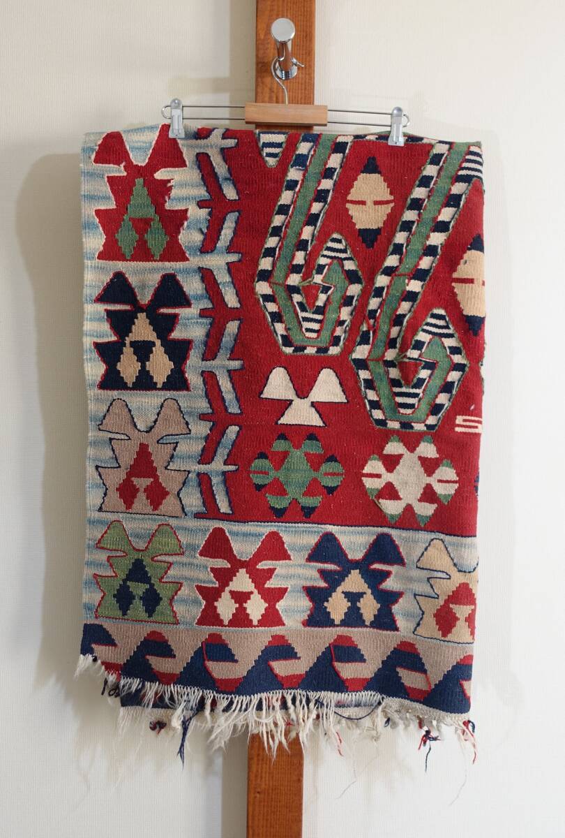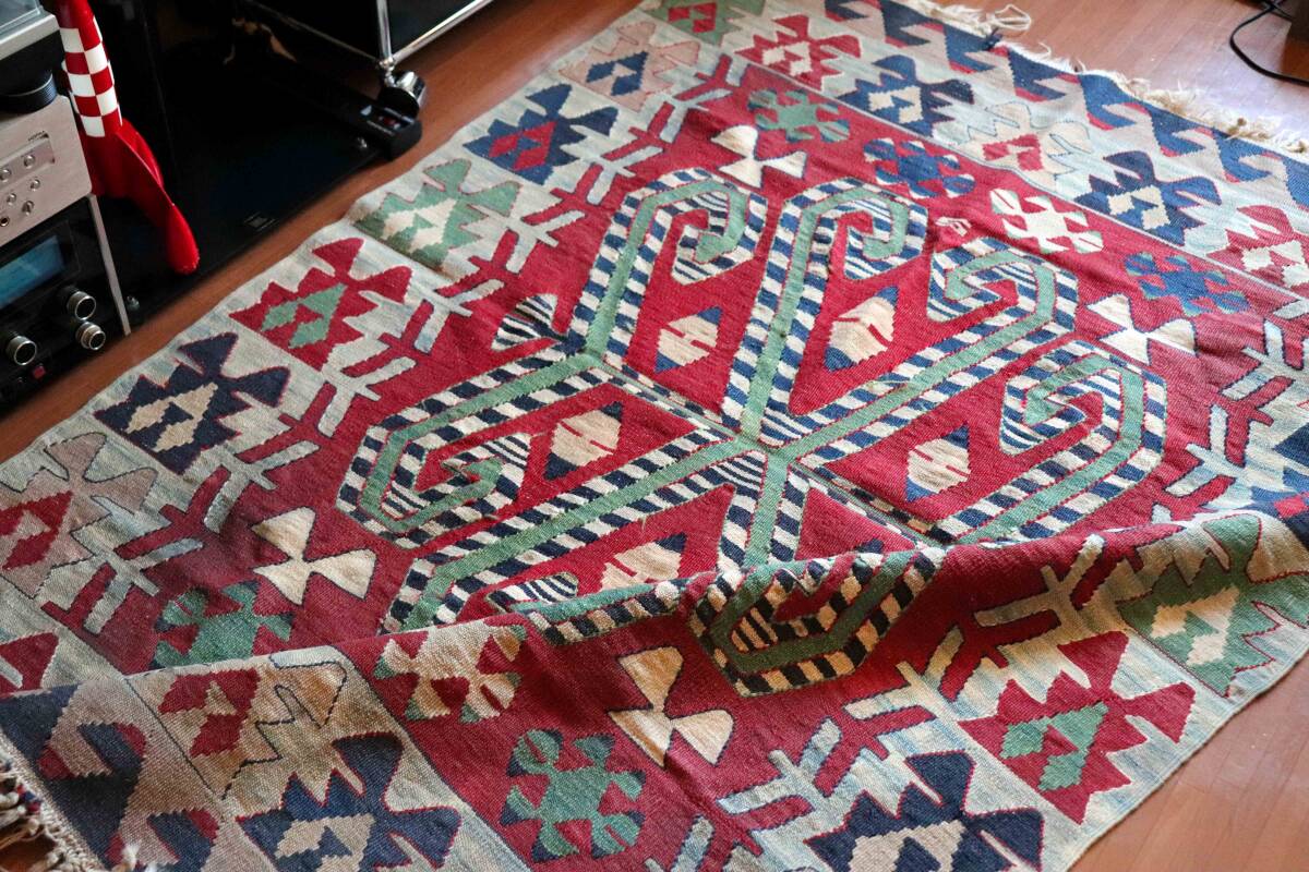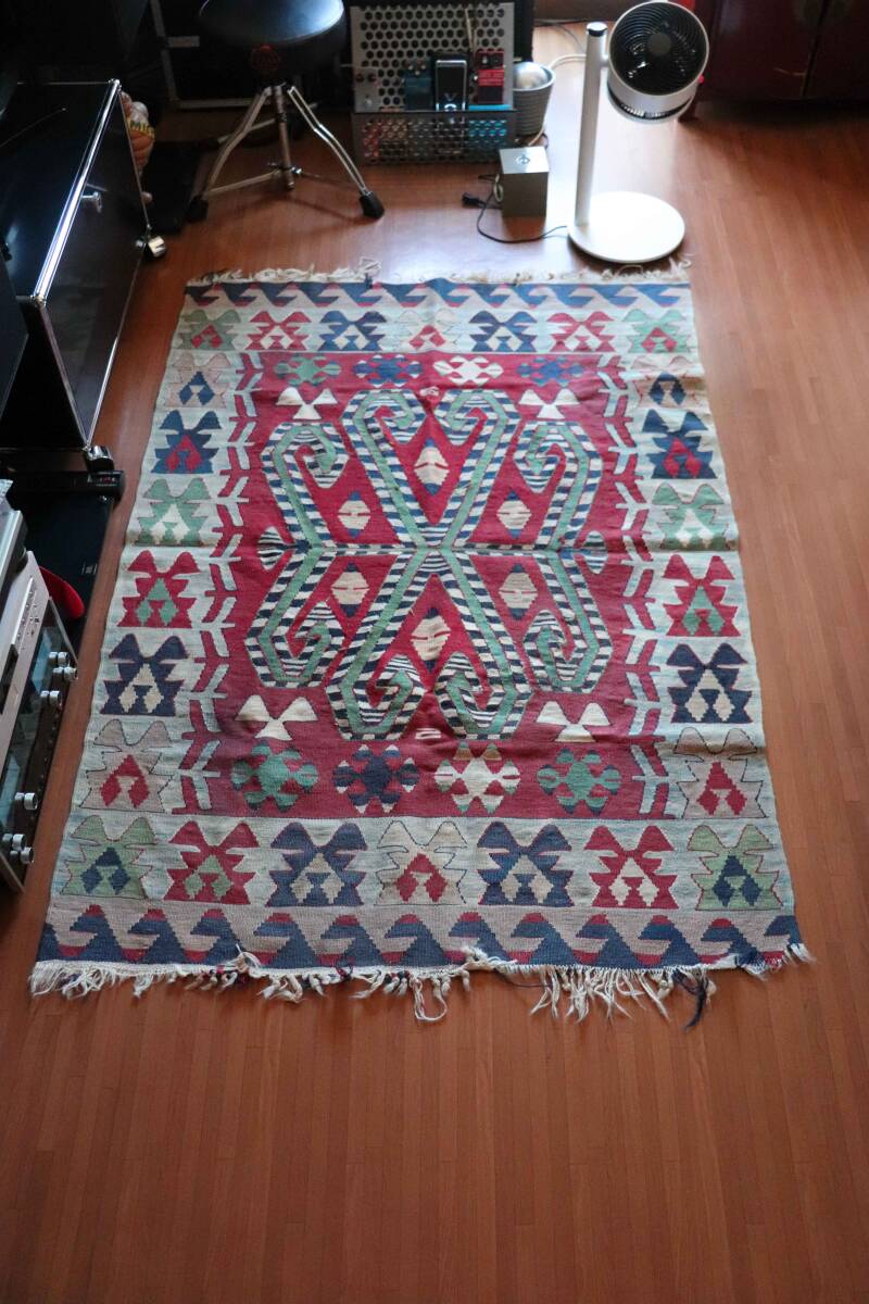 オールド ヴィンテージ★オールドキリム キリム◆ラグマット イラン カシュカイ族 カシュガイ族 114×164センチほど